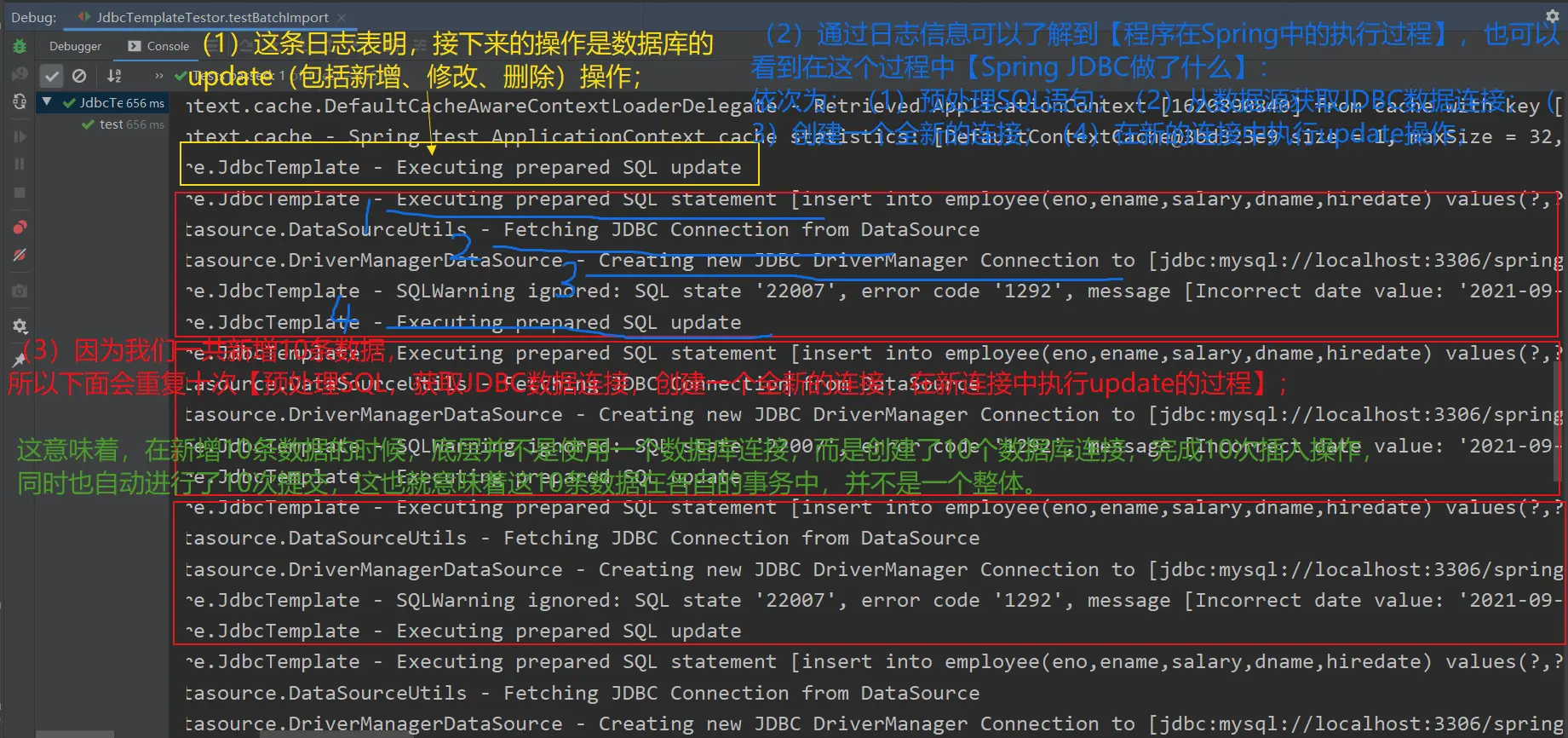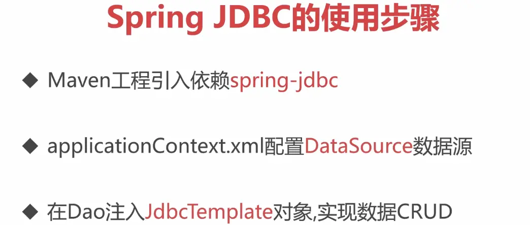 (5) 同时,由于Spring中【Spring IoC】容器的存在,和使用【原生JDBC】相比,使用【Spring JDBC】程序也变得更容易管理;