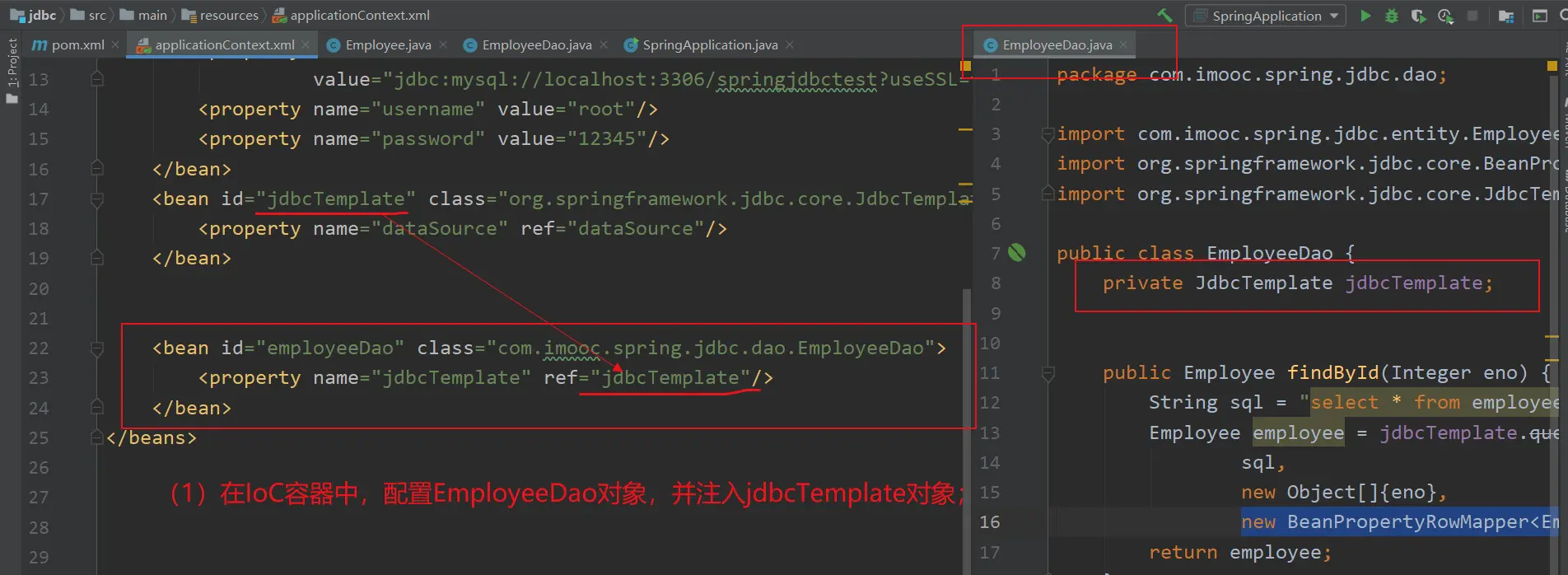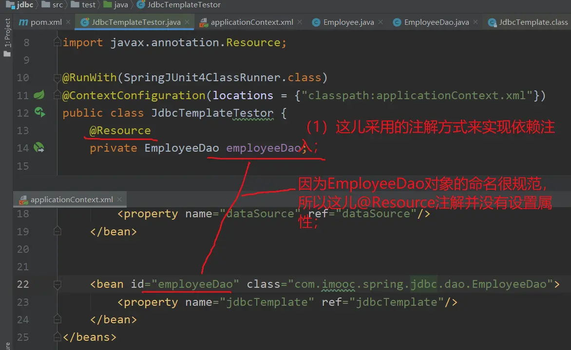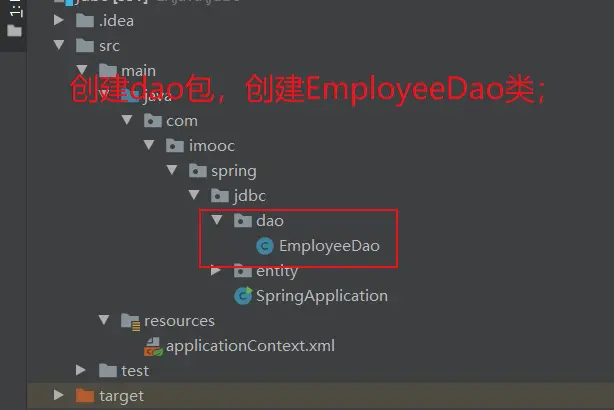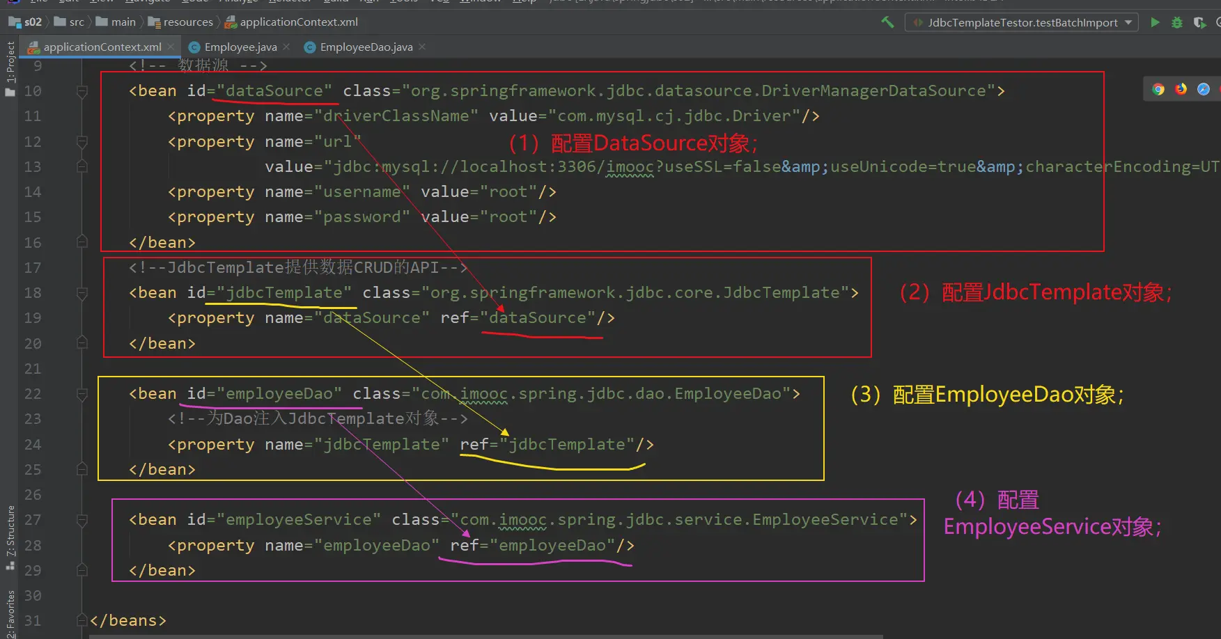 (2) EmployeeDao没什么好说的,就是使用注解形式配置IoC,然后使用注解完成对象的注入;