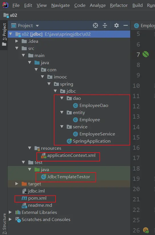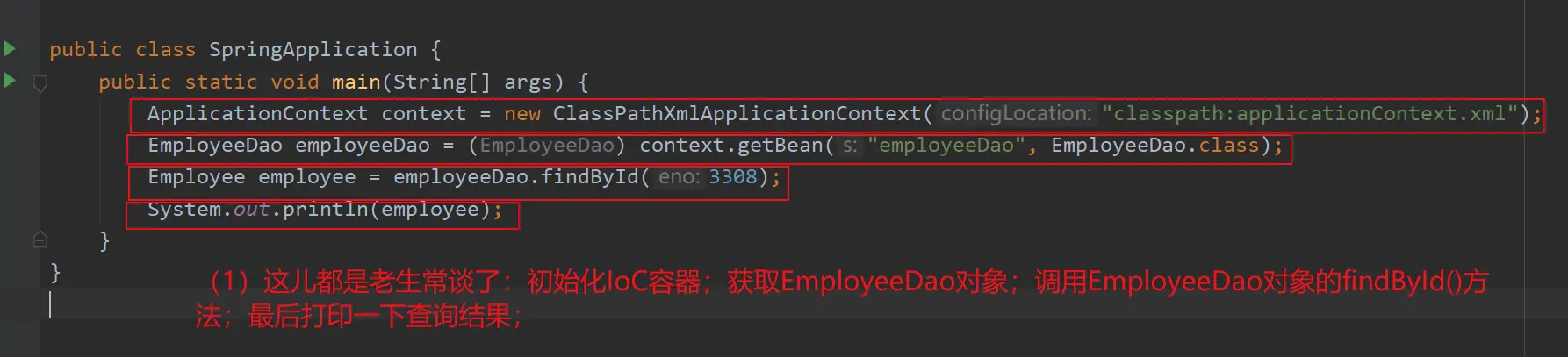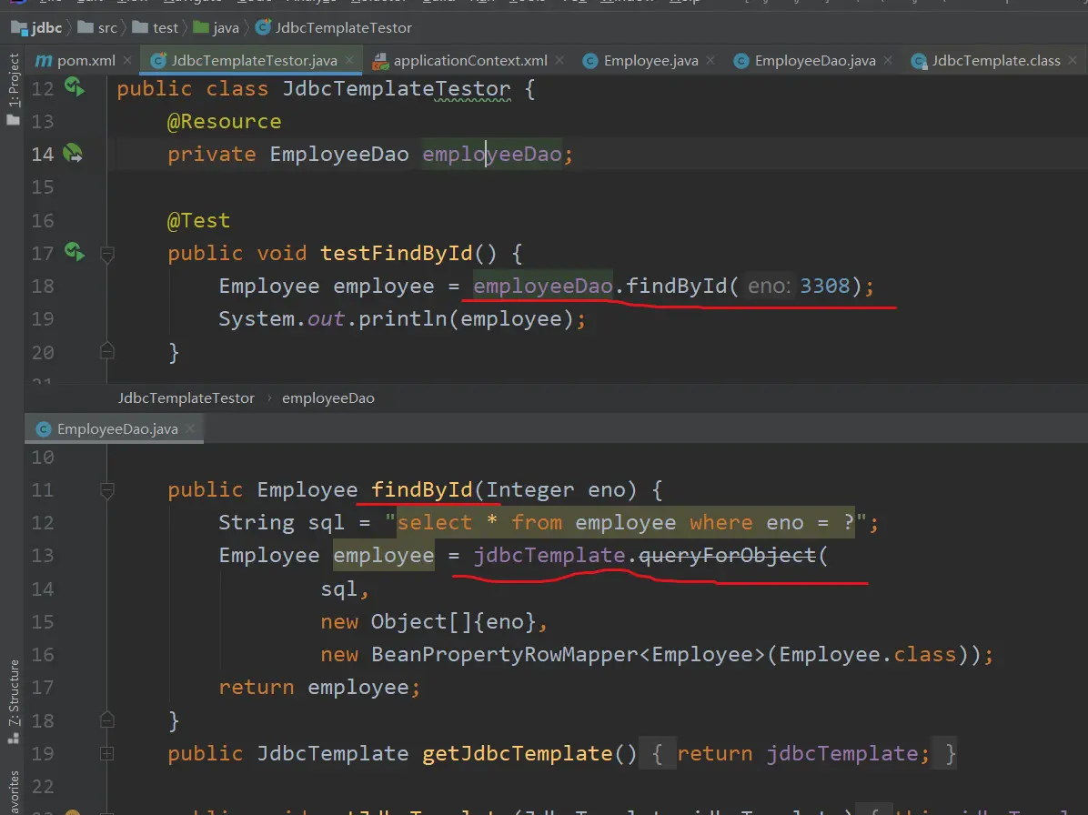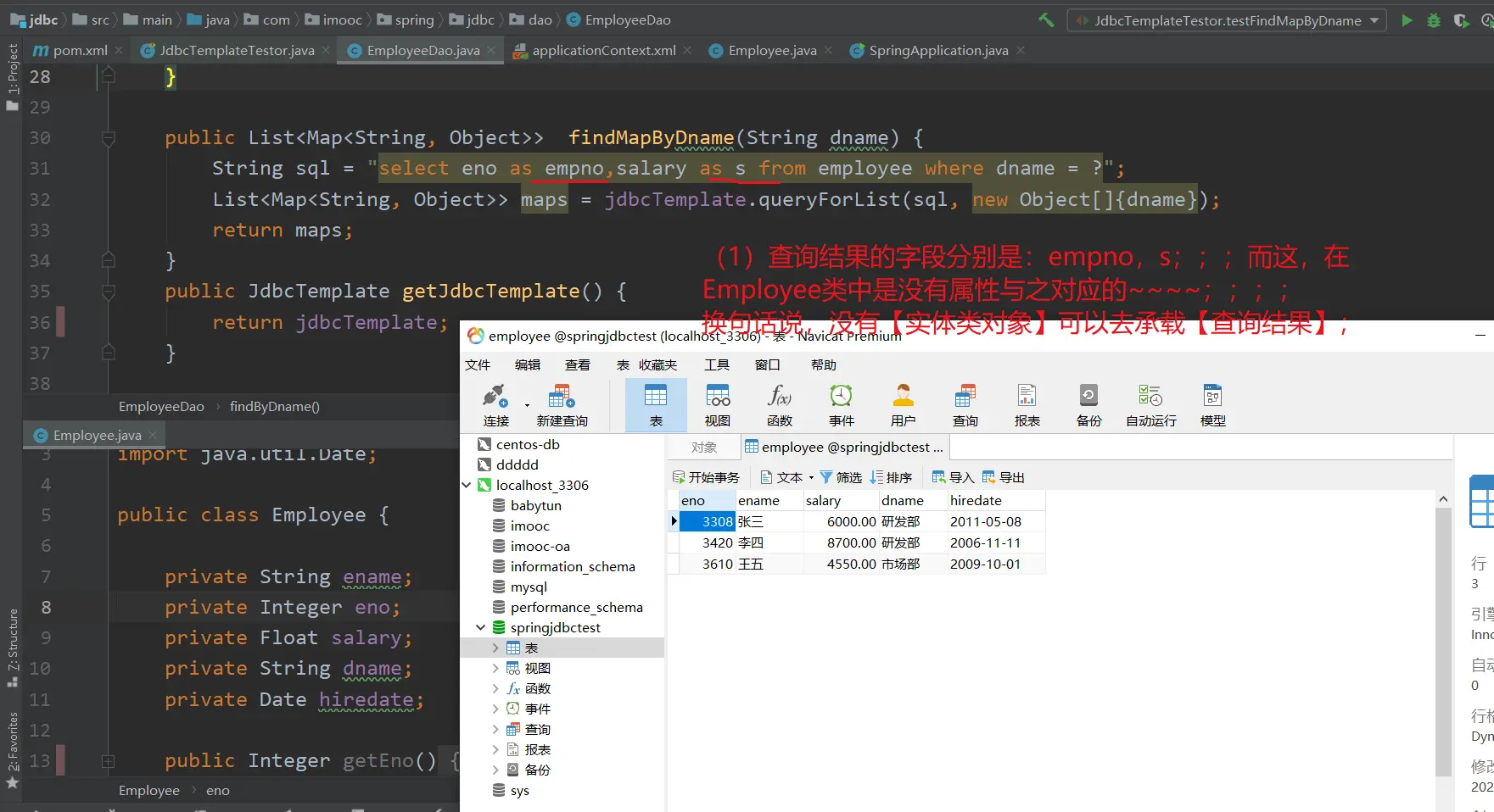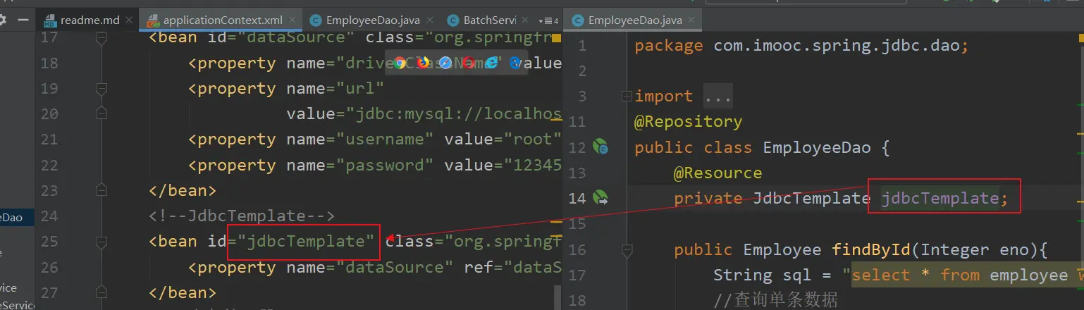 (2) EmployeeDao没什么好说的,就是使用注解形式配置IoC,然后使用注解完成对象的注入;