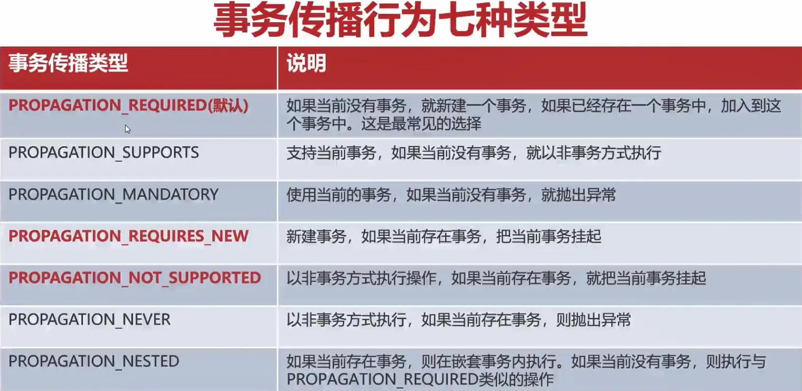 ● 日常开发中,大多数我们使用【REQURIED】,因为我们一般要保证一个Service方法中的内容要么全部OK,要么什么也不做;