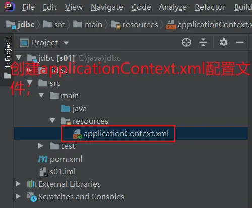 4.创建applicationContext.xml配置文件:配置dataSource对象;jdbcTemplate对象;