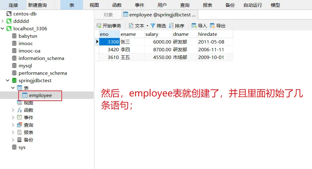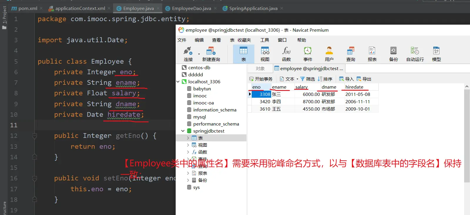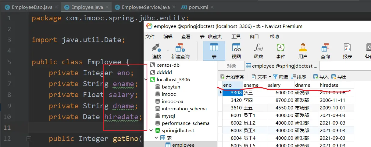 5.创建与数据库表对应的实体类:Employee类,作为承载存储数据库查询结果的实体类;