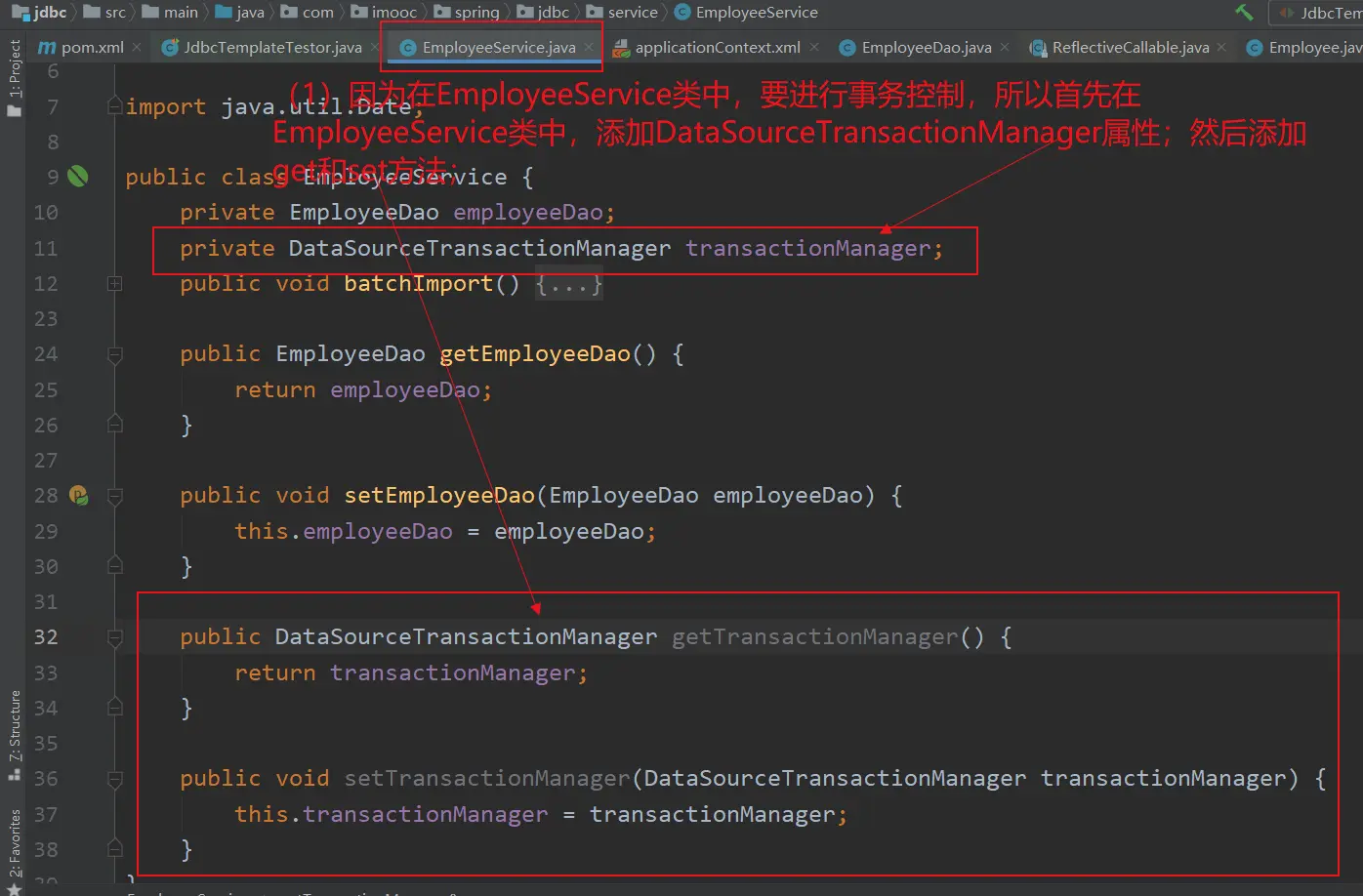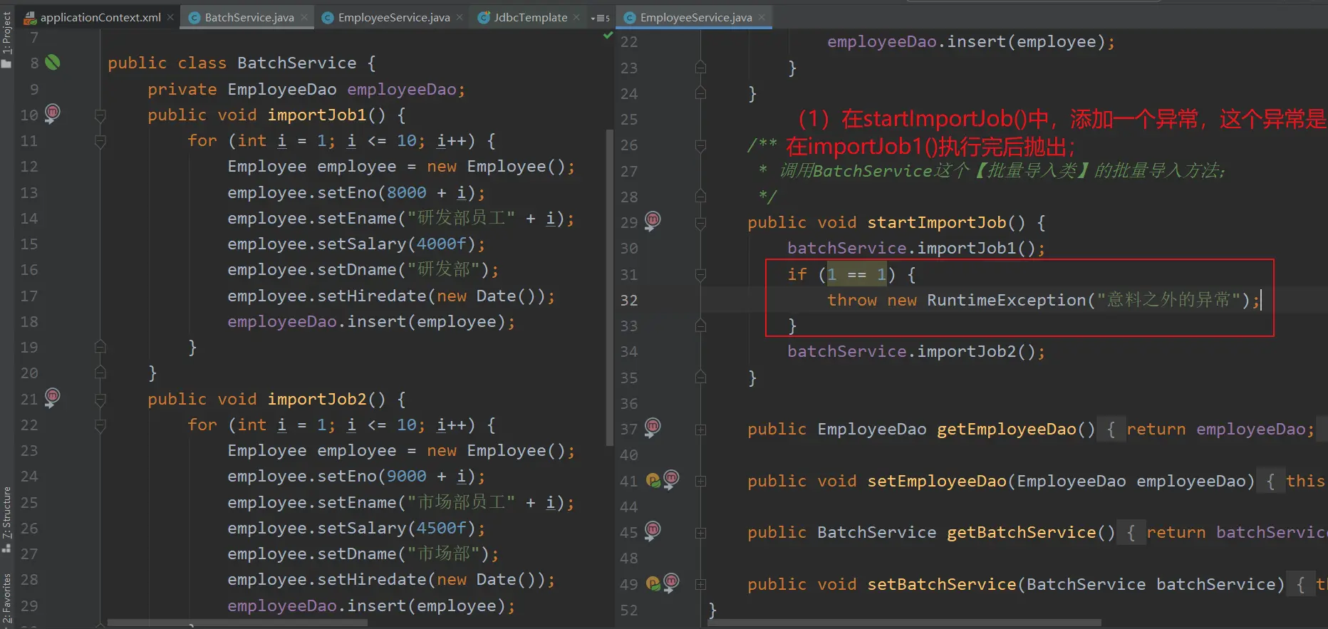 (2) 为了能实现(1)中的需求,在EmployeeService类中增加了BatchService属性,并添加对应的get和set方法;