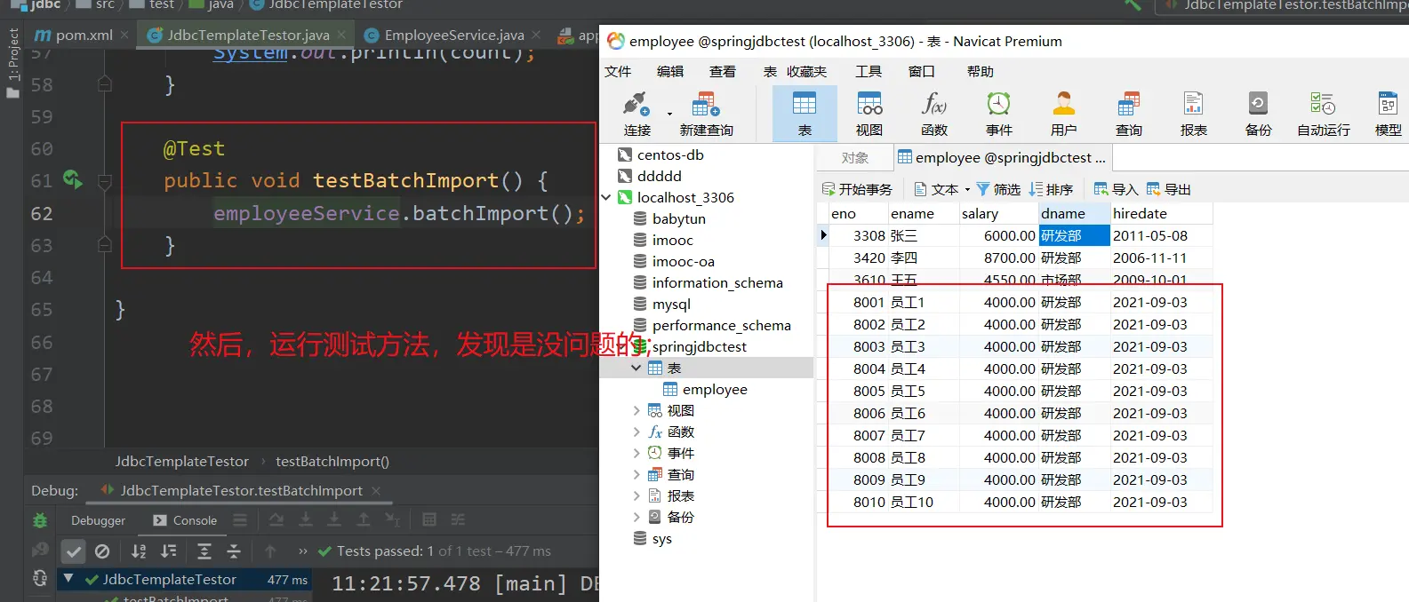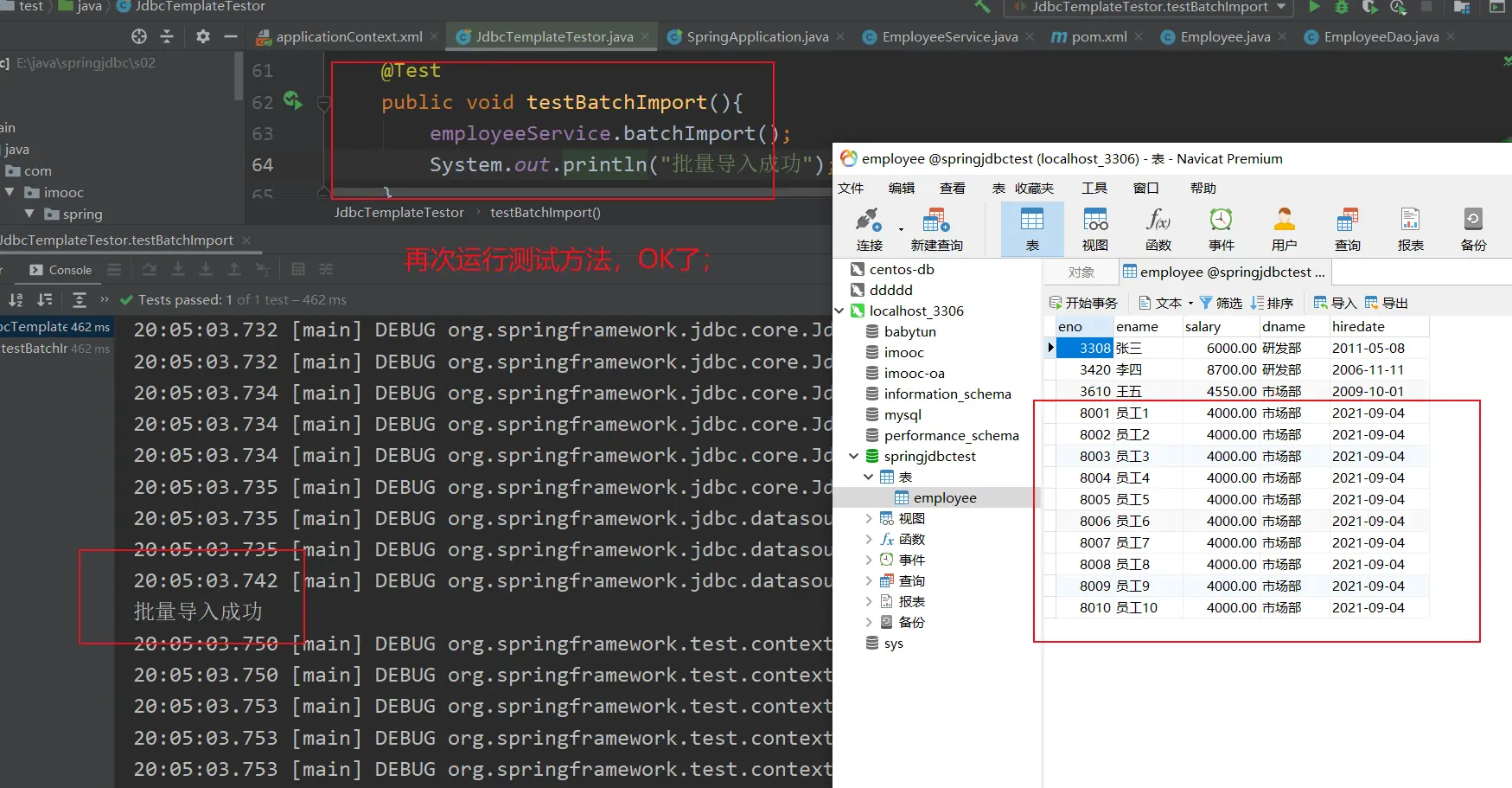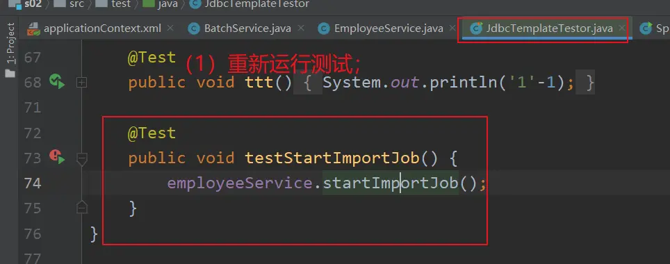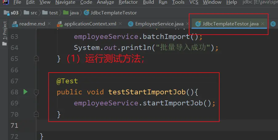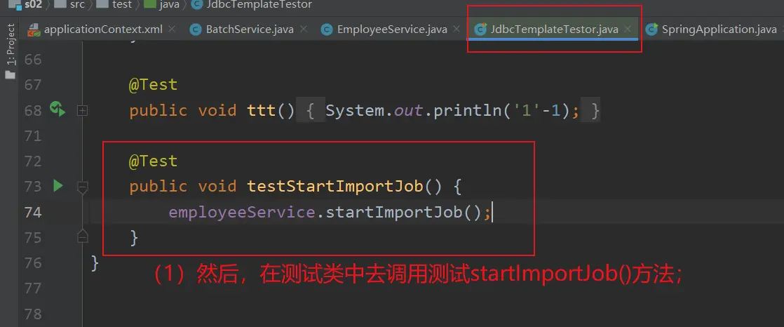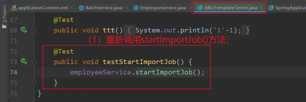 (1) 在EmployeeService类中,新增了startImportJob()方法,该方法中,调用了BatchService类中的方法;