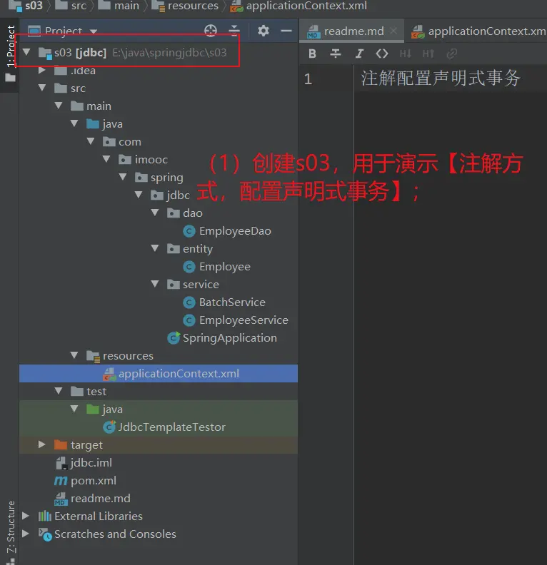 (2)applicationContext.xml:配置公用类对象;启用注解形式声明事务;