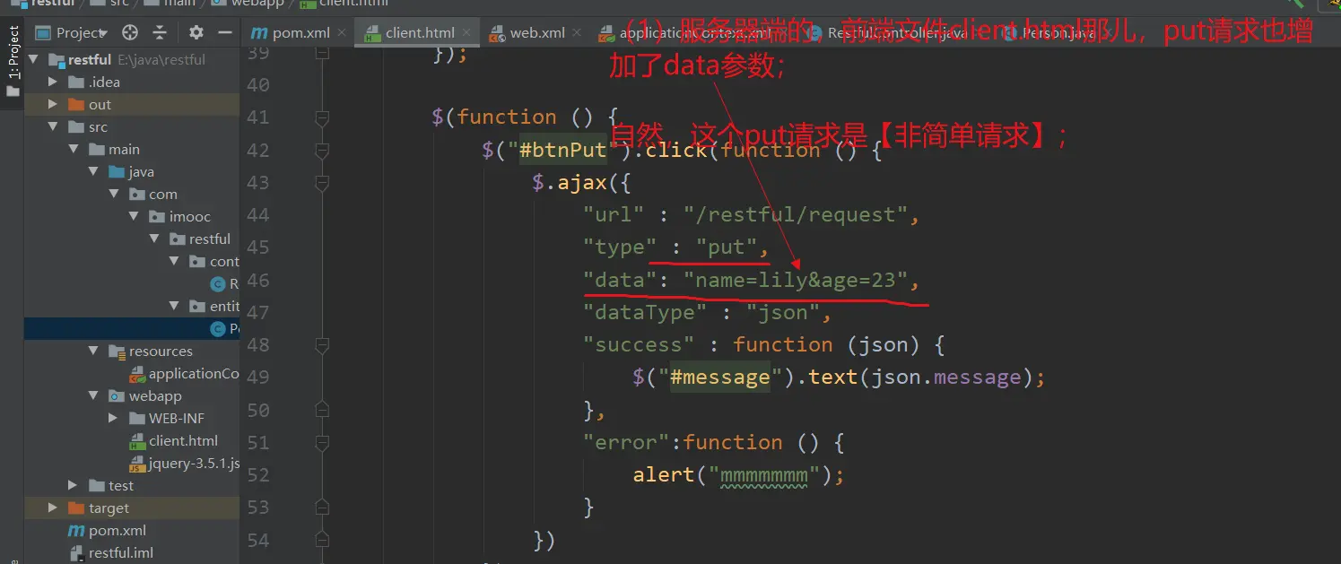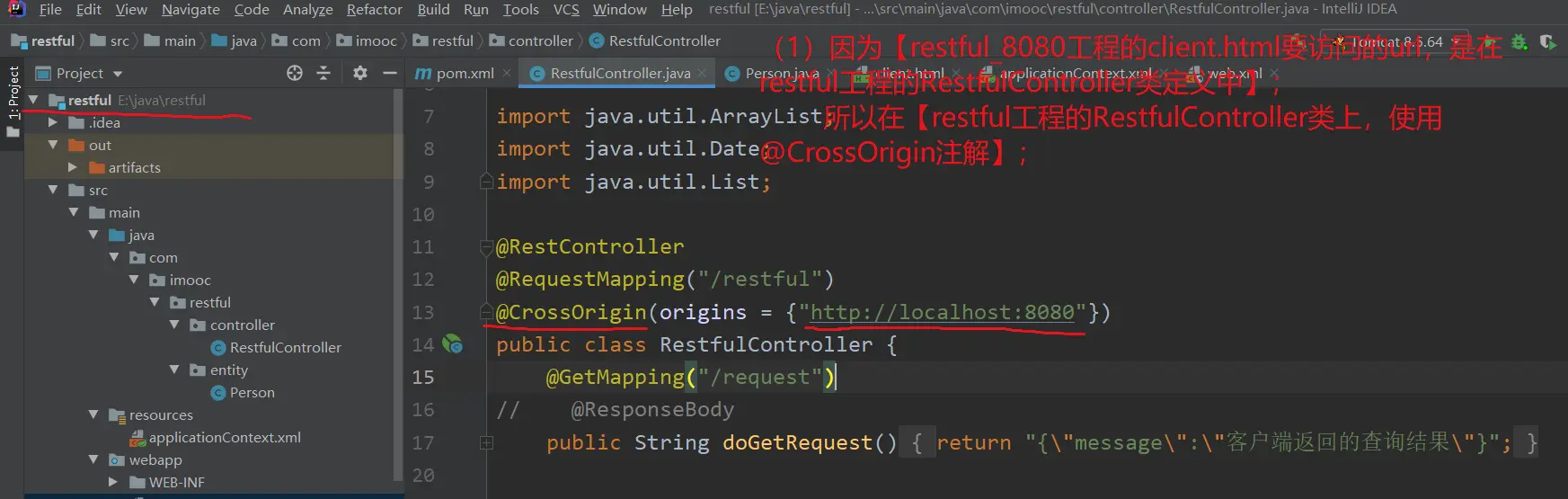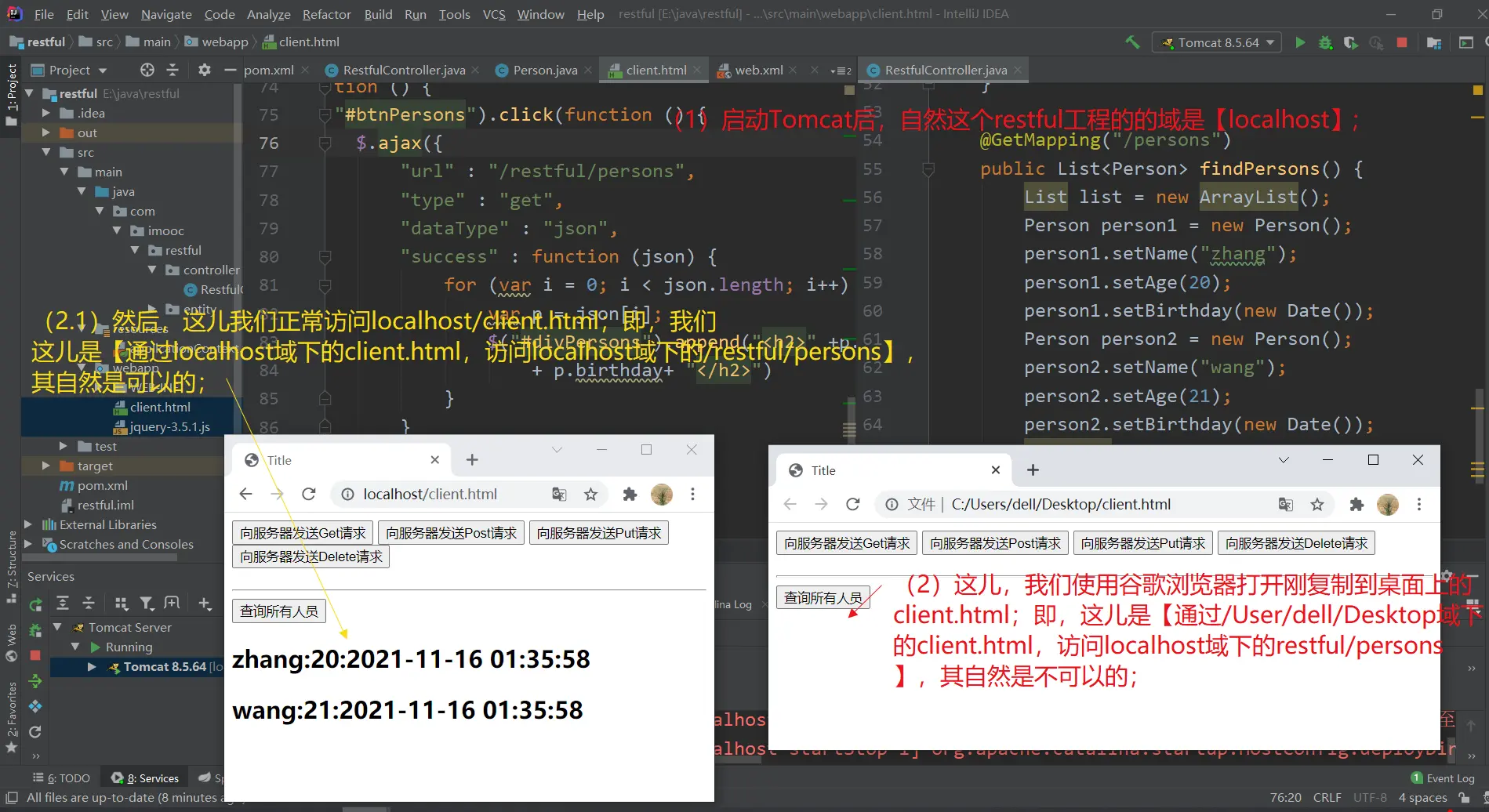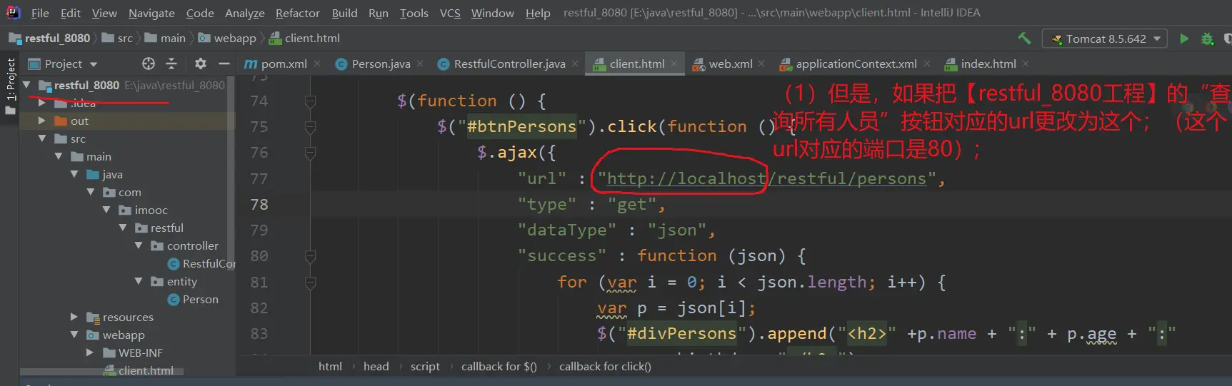 ● 因为在上面的案例中,是【restful_8080工程的:localhost:8080,下的client.html】访问【restful工程的:localhost:8080,下的/restful/persons】;即【restful工程】是服务提供端;