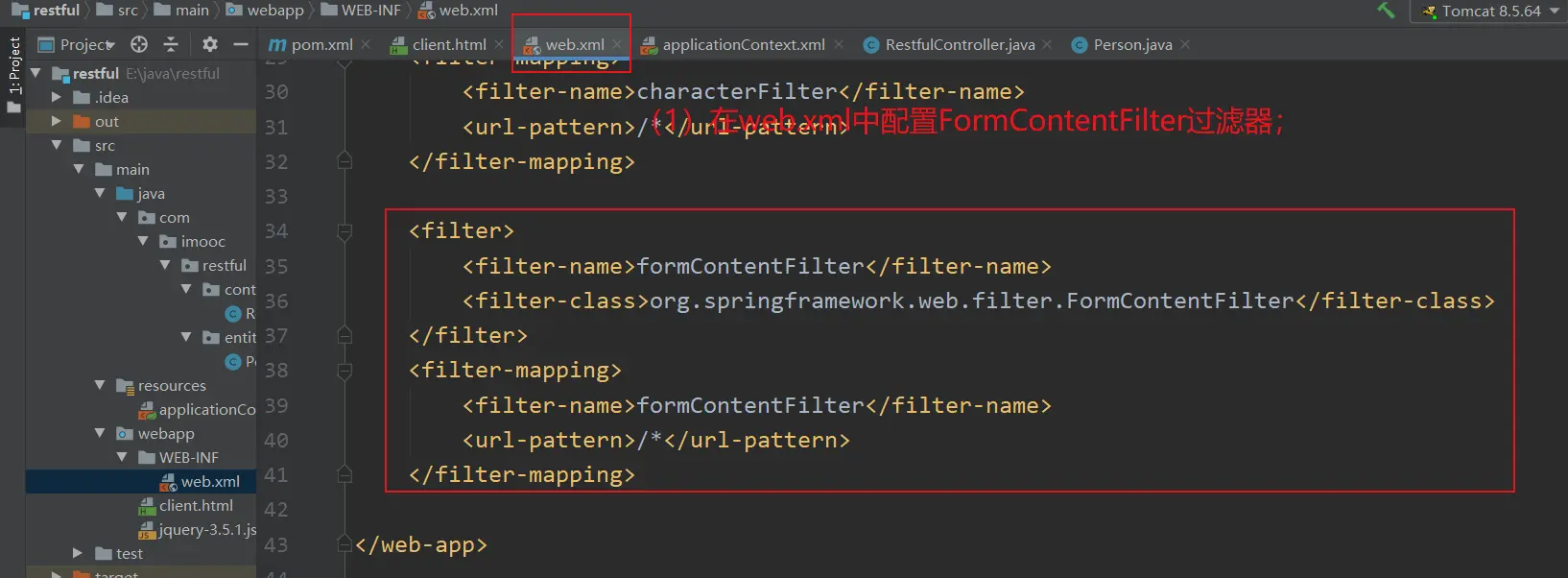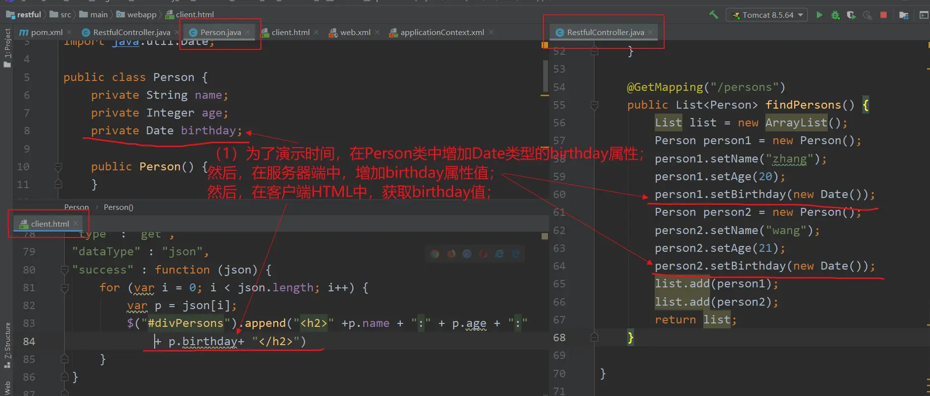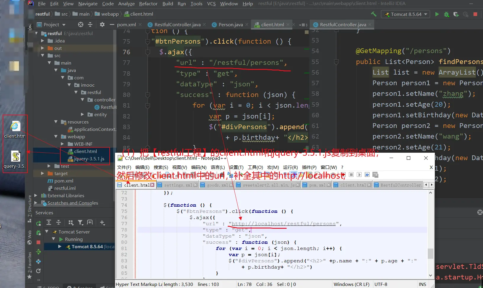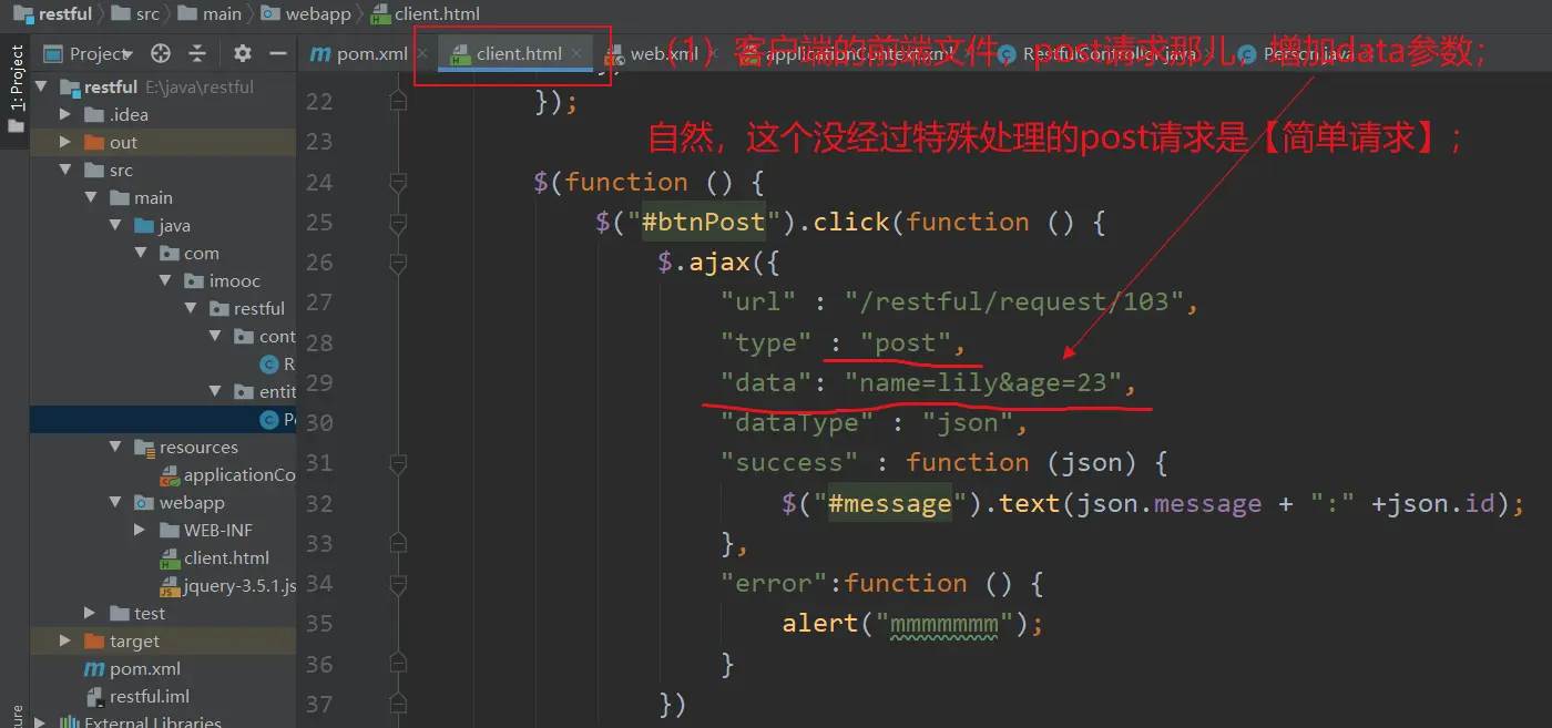 ● 因为在上面的案例中,是【restful_8080工程的:localhost:8080,下的client.html】访问【restful工程的:localhost:8080,下的/restful/persons】;即【restful工程】是服务提供端;