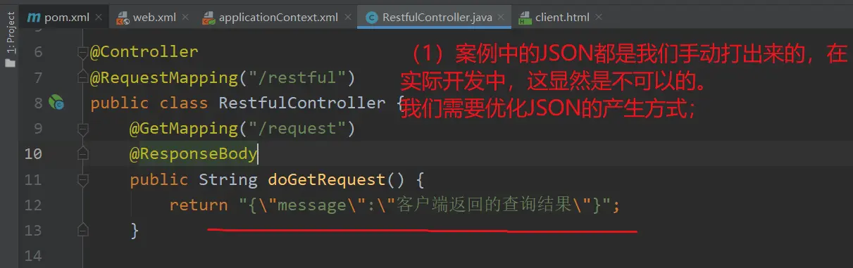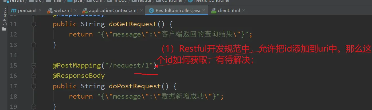 (2) 本篇博客没什么难点,只是创建一个项目,为后面的演示作准备;同时,初步的演示了RESTful开发风格的程序;