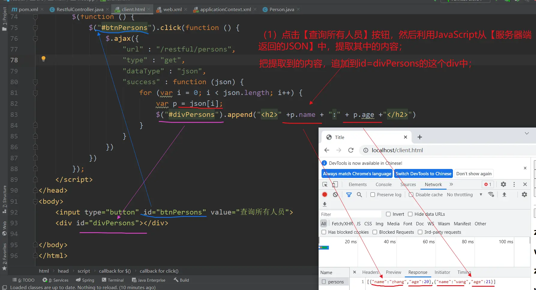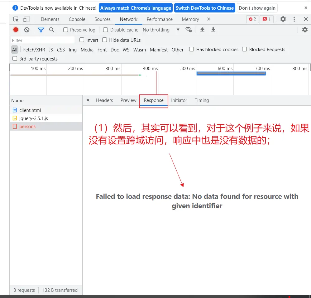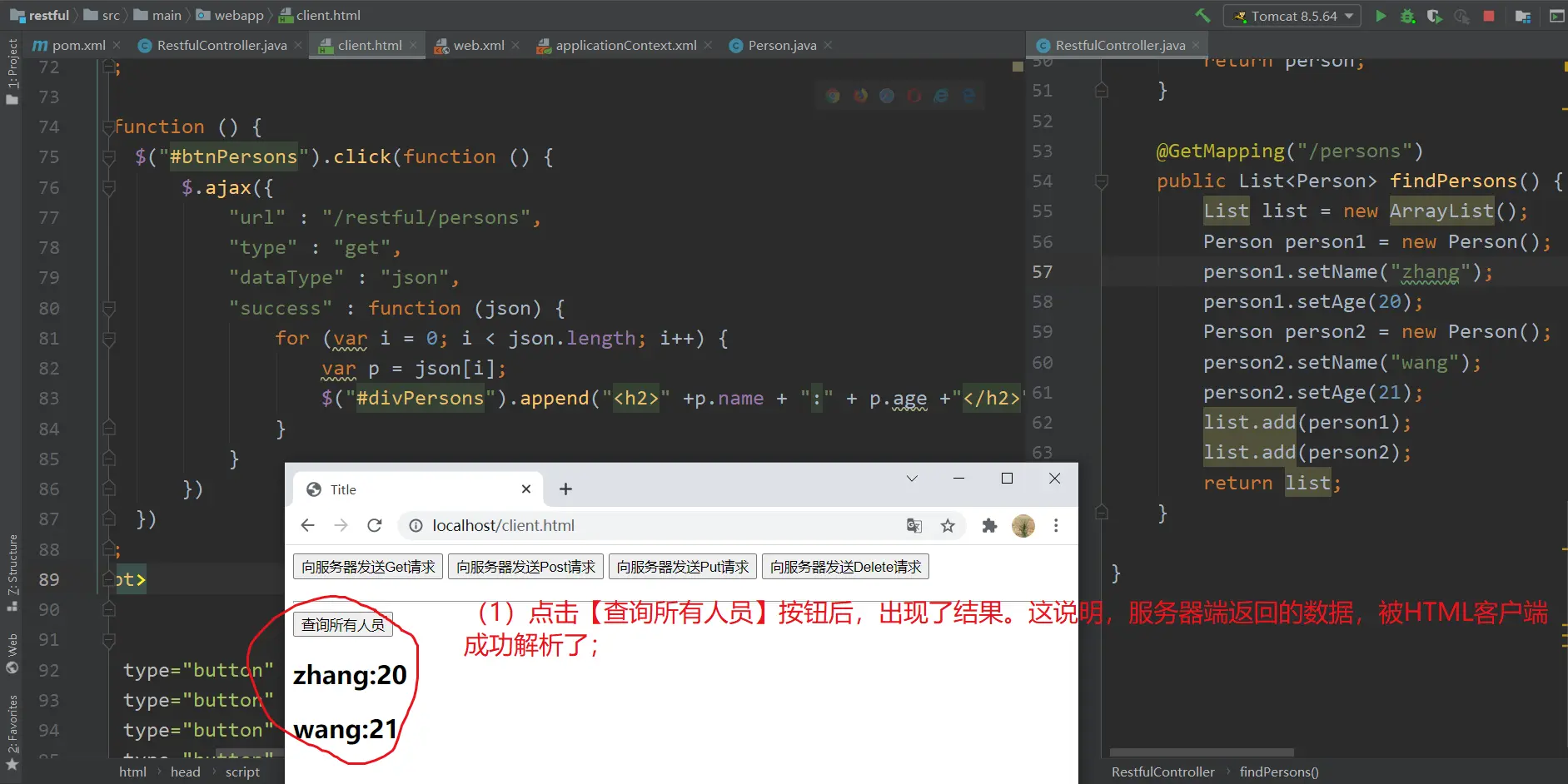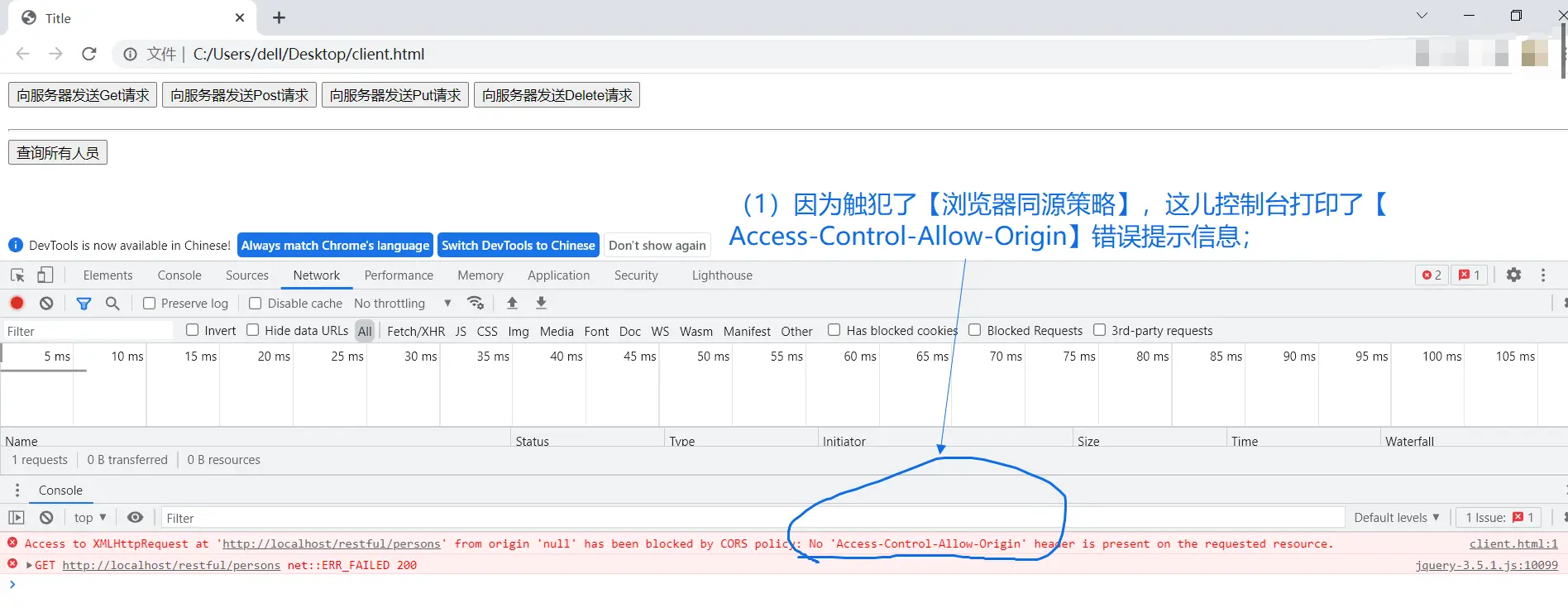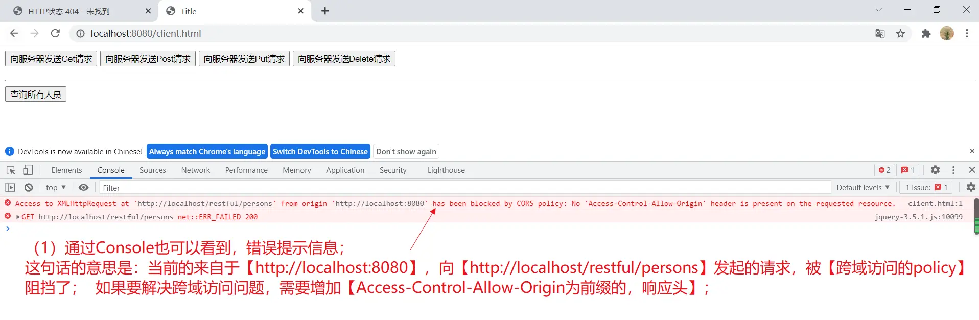 即,在上面的过程中【localhost:8080,下的client.html】访问【localhost:8080,下的/restful/persons】时,没有跨域,其自然是可以访问的;