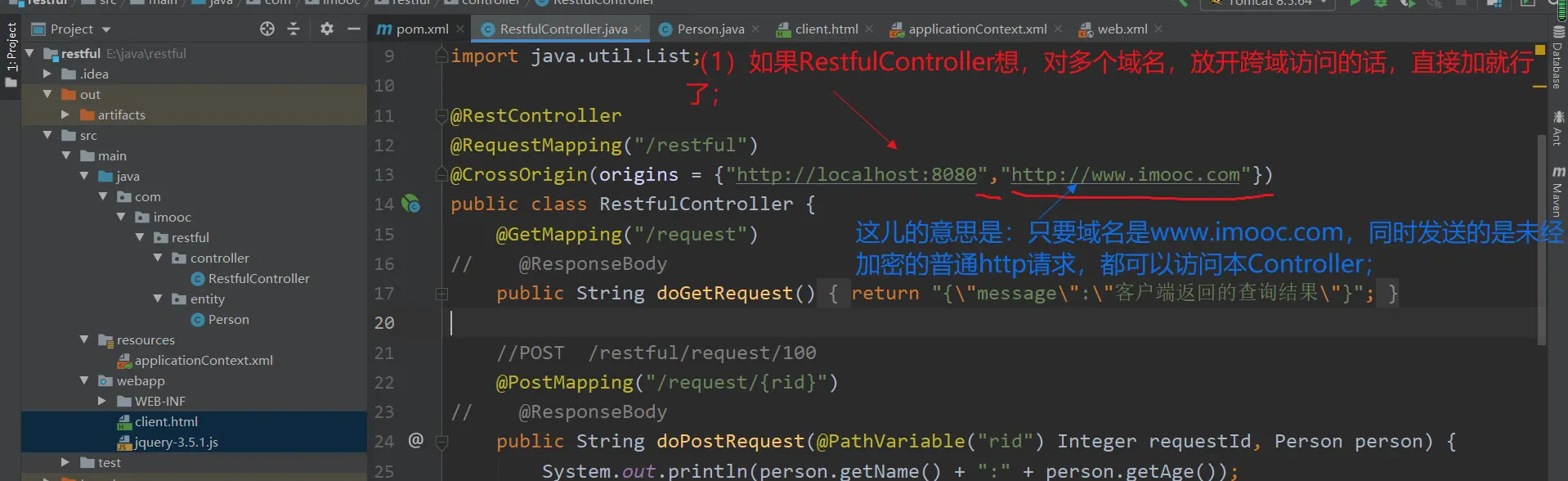 @CrossOrigin(origins = {"http://localhost:8080","http://www.imooc.com"})