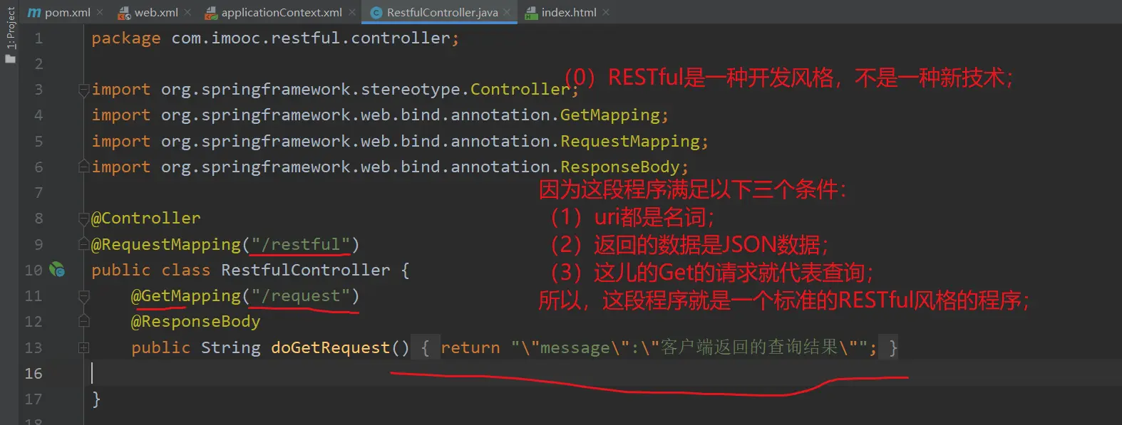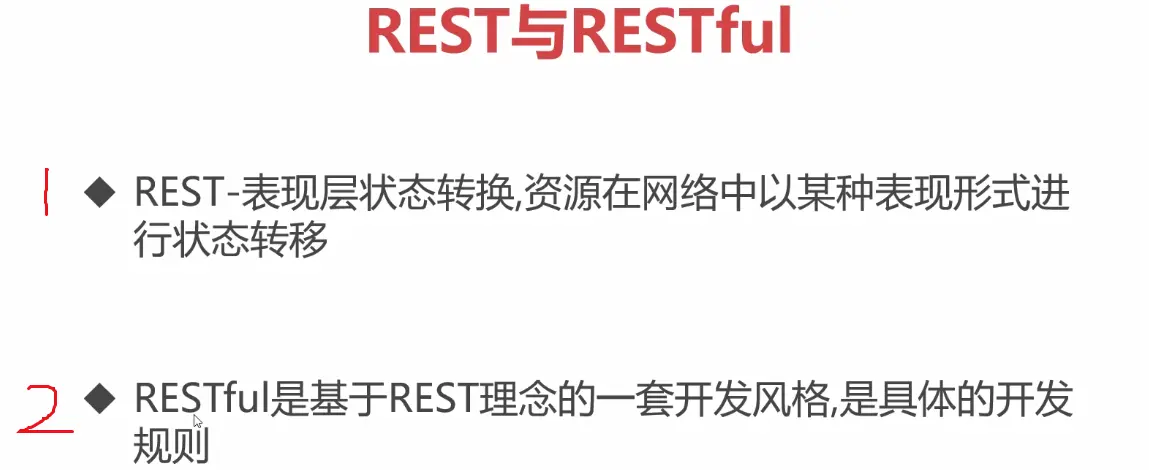 (1) RESTful是REST理念下的一种开发风格,一种具体的开发规则;