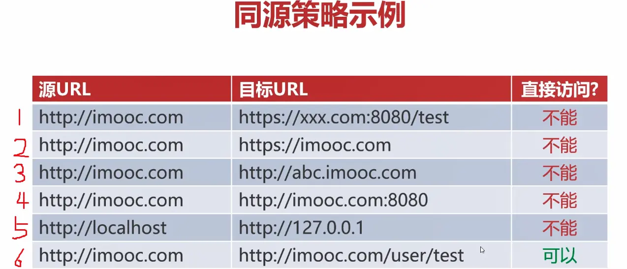 (3) 域名不同(一个是imooc.com,一个是abc.imooc.com,即目标url增加了二级域名abc):其自然是不同的域;