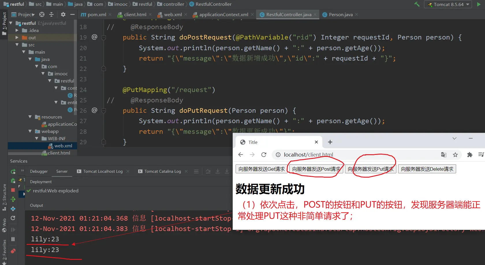 上面设置好了之后,重启【restful工程】和【restful_8080工程】: