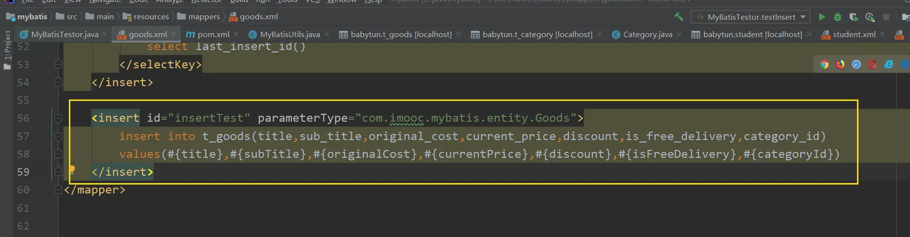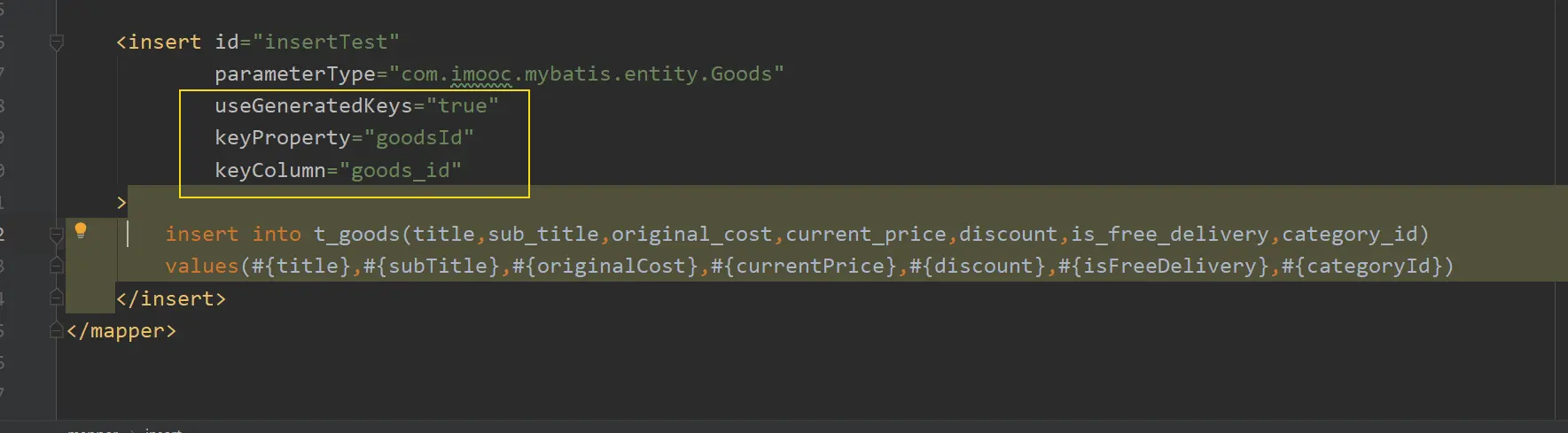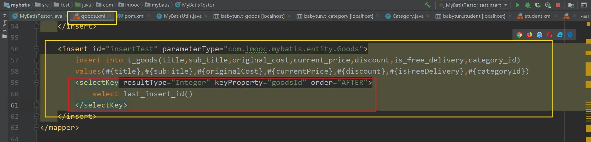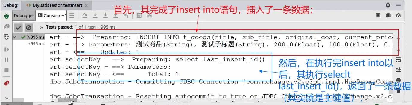运行结果:新生成的主键值goods_id被回填到了Goods对象的goodsId属性中。