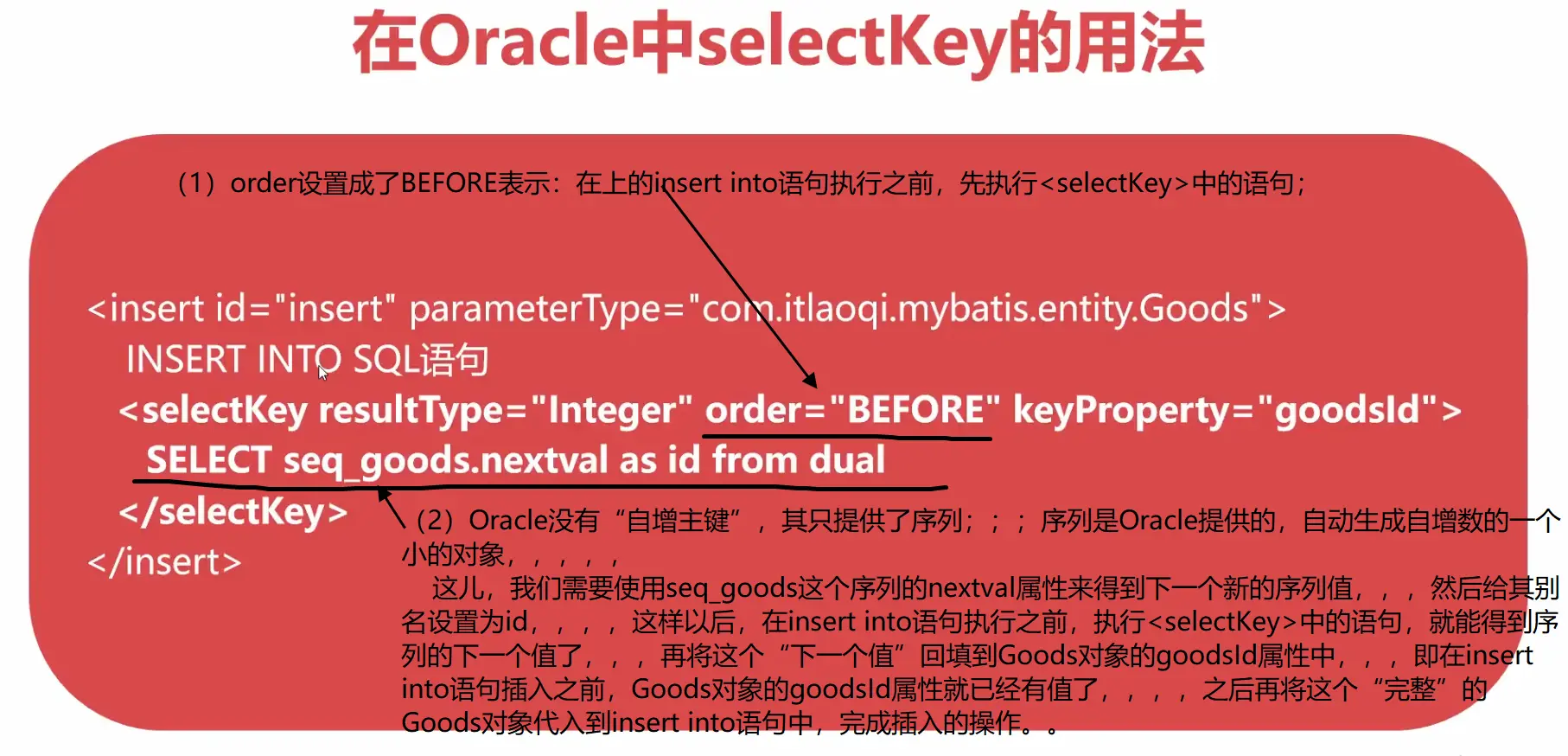 (3) 附注:Oracle中,【<selectKey>标签】的用法: