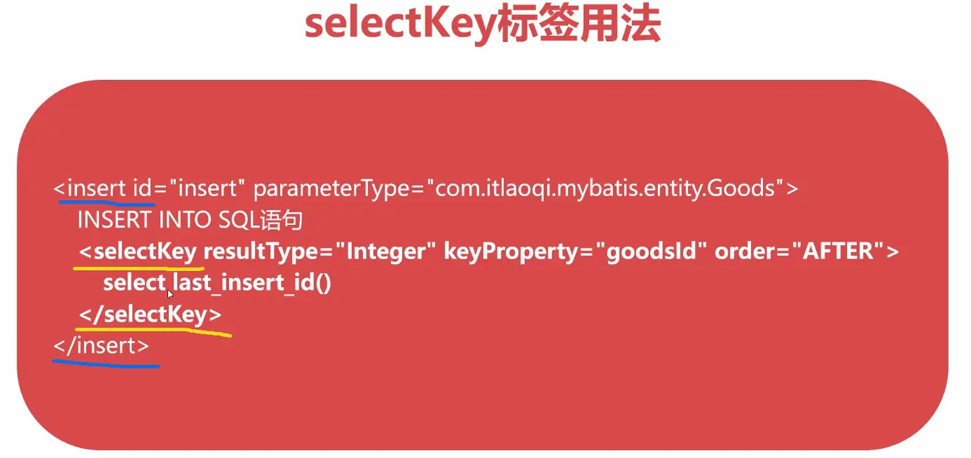 (1) 【<selectKey>标签】需要明确写【select last_insert_id()】这条语句;