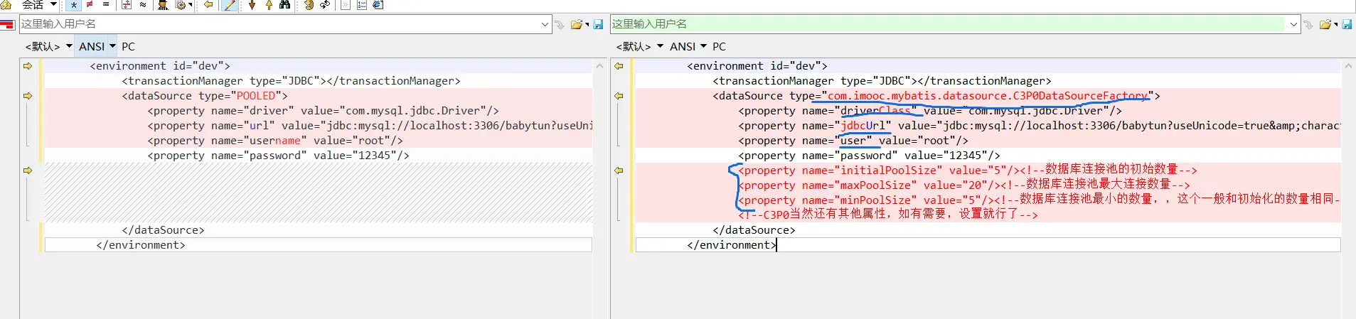 主要是属性的名称都变了,因为不同的连接池对这些属性的命名要求是不同的啦,这些属性的名字不好记,需要参考相应连接池的文档(这儿是需要参考C3P0的文档)来编写。