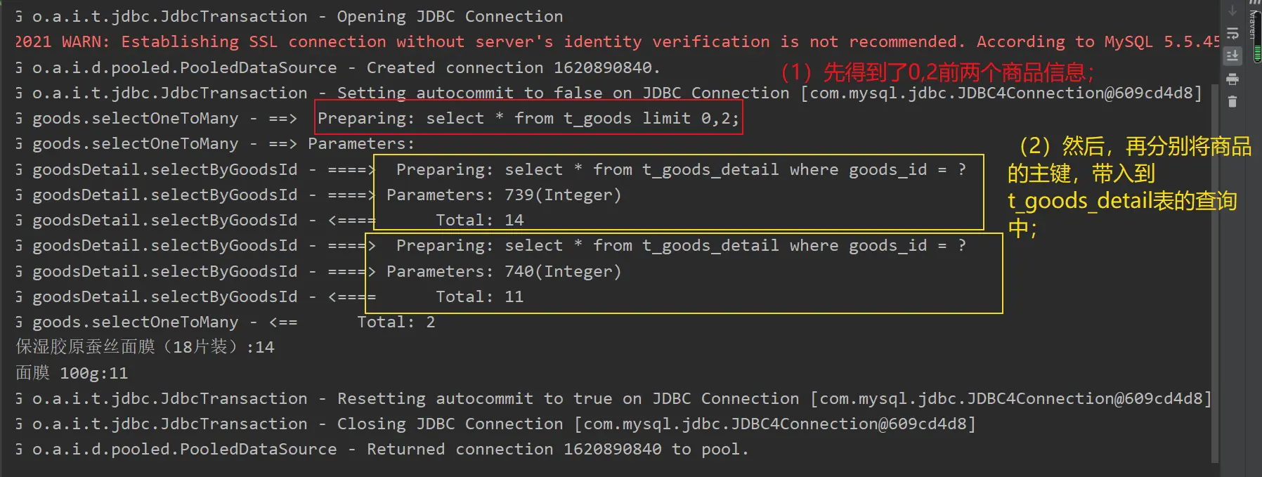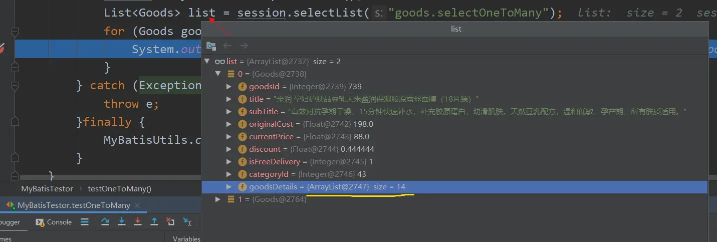 List<Goods> list = session.selectList("goods.selectOneToMany");