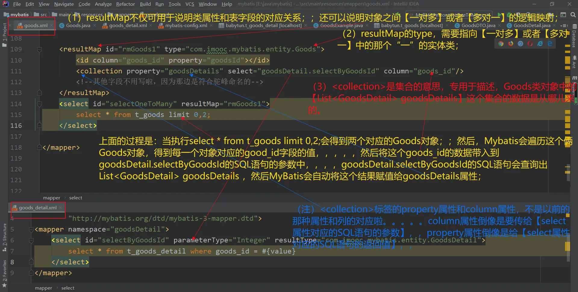 然后,为了指明【List goodsDetails】的数据来源,需要在goods.xml中进行对象关联的描述