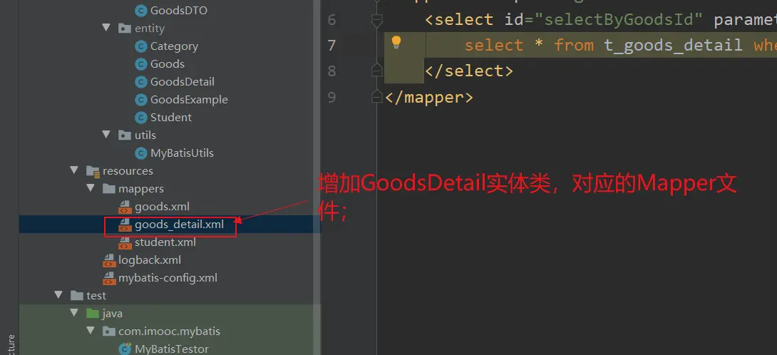 <select id="selectByGoodsId" parameterType="Integer" resultType="com.imooc.mybatis.entity.GoodsDetail">