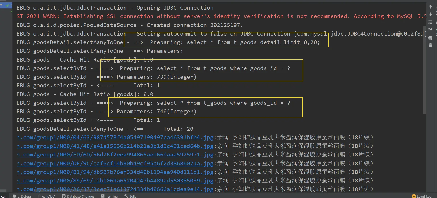 说明:(1)其核心就是,根据传入的商品id,来查询商品的详情;(2)待会,进行对象关联的时候,需要使用到这个SQL;