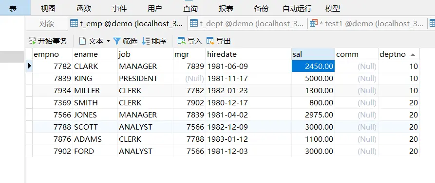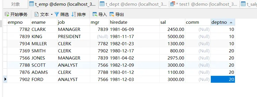 INSERT INTO t_emp(empno,ename,job,mgr,hiredate,sal,comm,deptno)