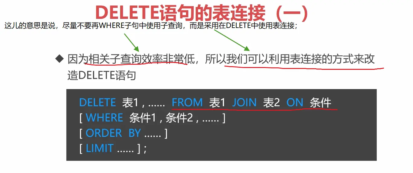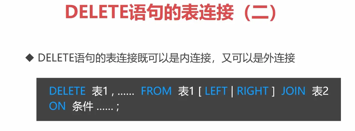(1)DELETE语句中也是可以利用表连接的:以实现复杂的业务;
