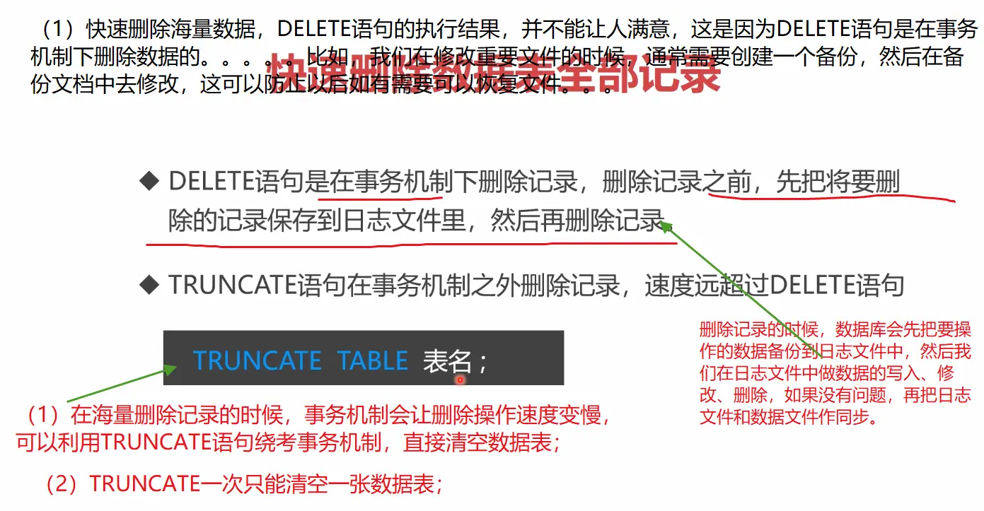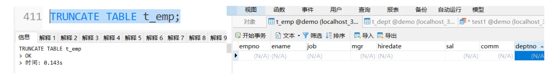 五:快速删除数据表的全部记录:TRUNCATE语句