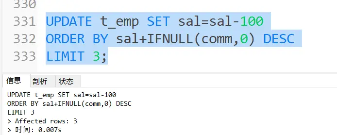 案例2: 把月收入排在前三名的员工,底薪减100元,用LIMIT子句完成