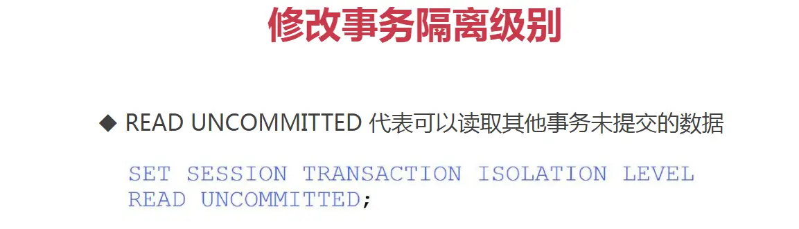 默认情况下,MySQL是不允许事务之间相互读取临时数据的,但是在某些特殊场合下,我们需要允许事务之间能读取到一些临时数据,这个就必须去修改事务的隔离级别了。