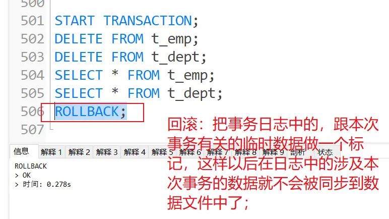 即可以这样理解,一旦使用ROLLBACK,本次事务的那些SQL操作 在 redo日志中的临时数据就会被标记,然后就失效了,然后就没有然后了……