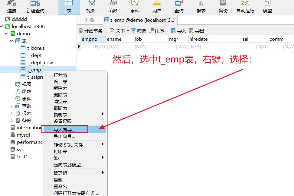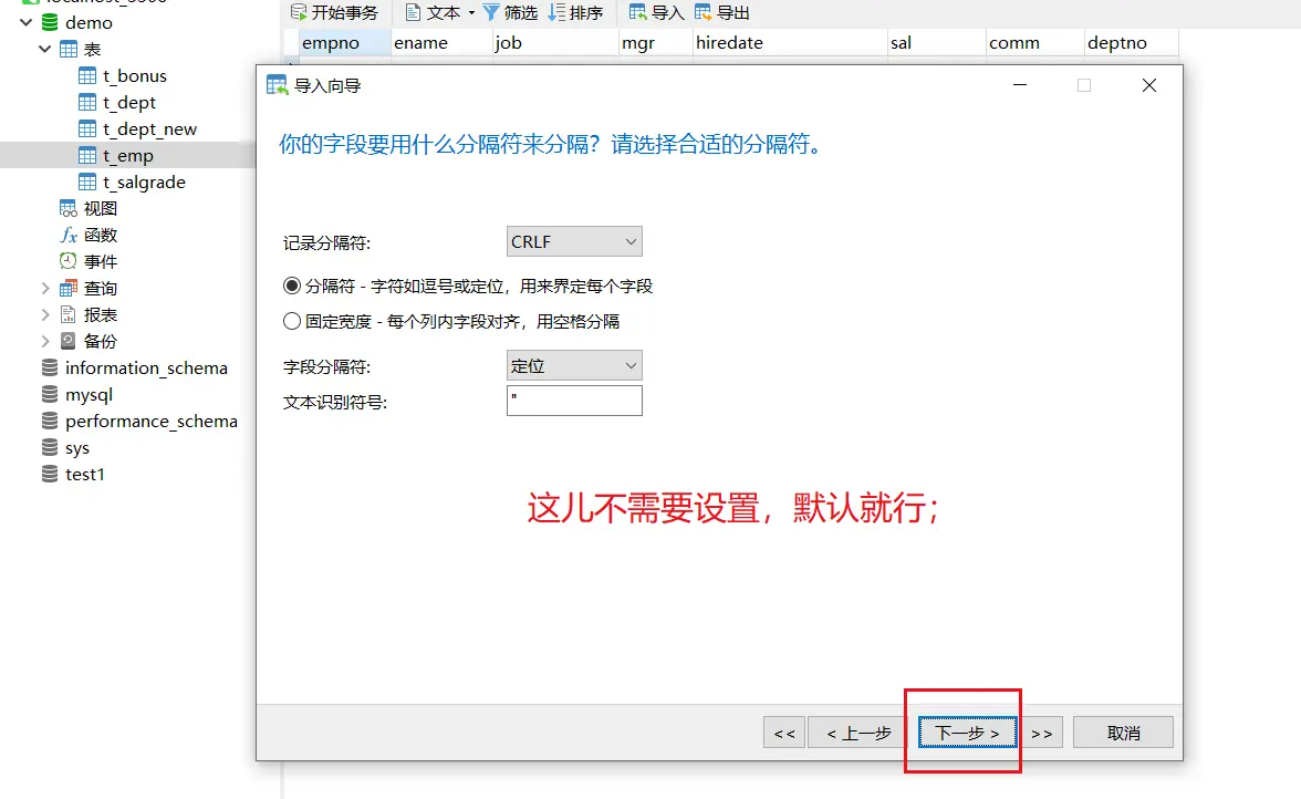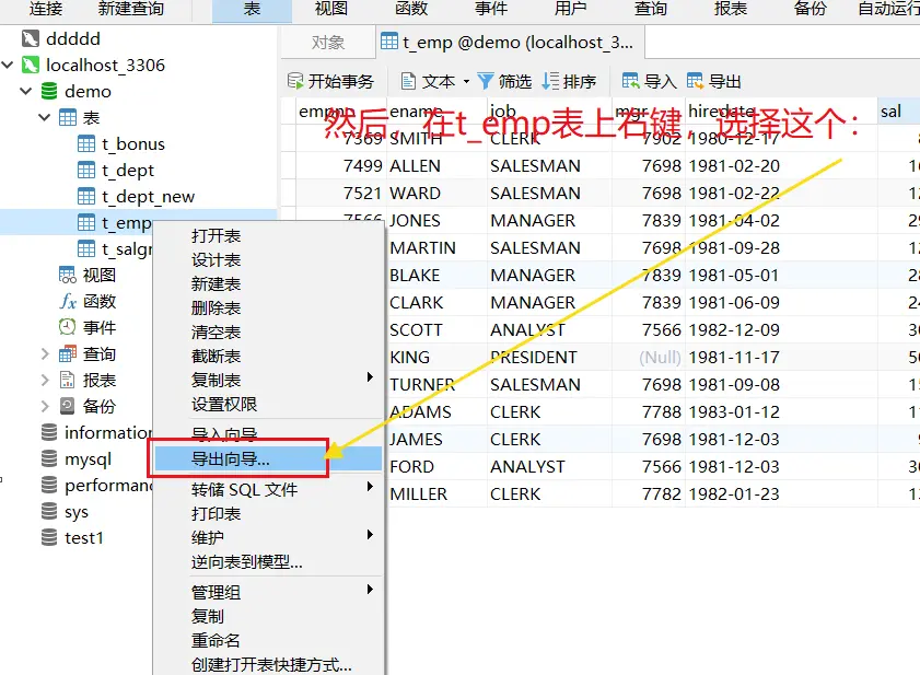 导出和导入文本文档的SQL命令非常复杂,不容易掌握。这儿仅仅展示图形界面的方式。