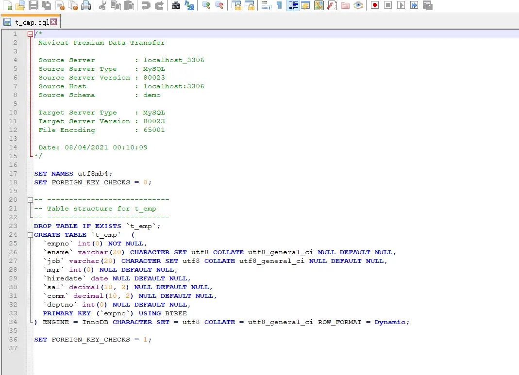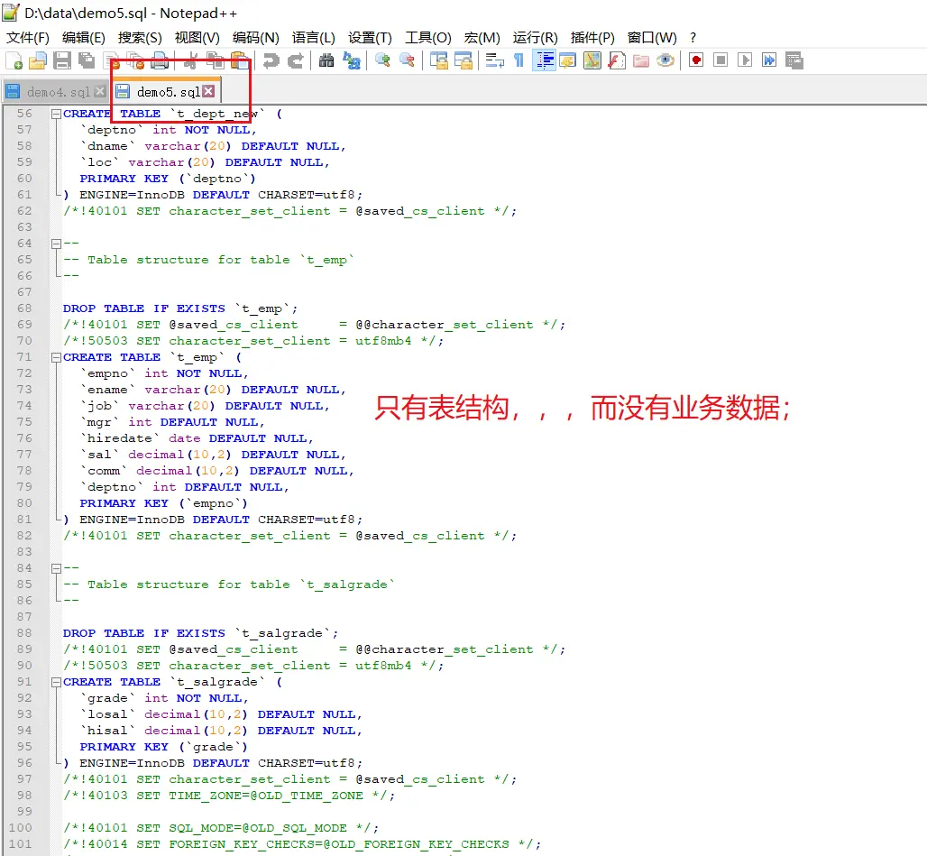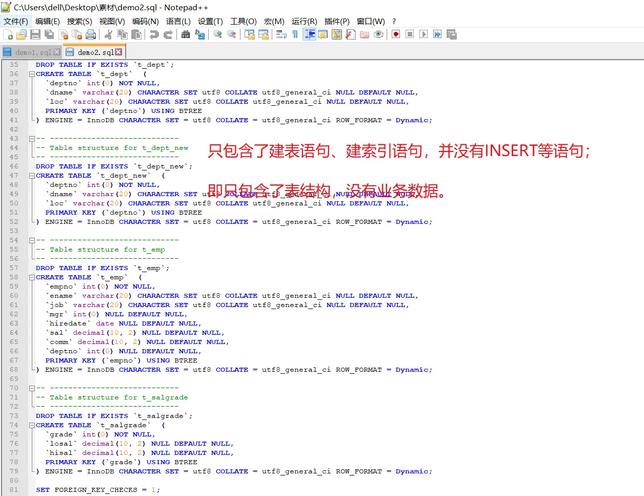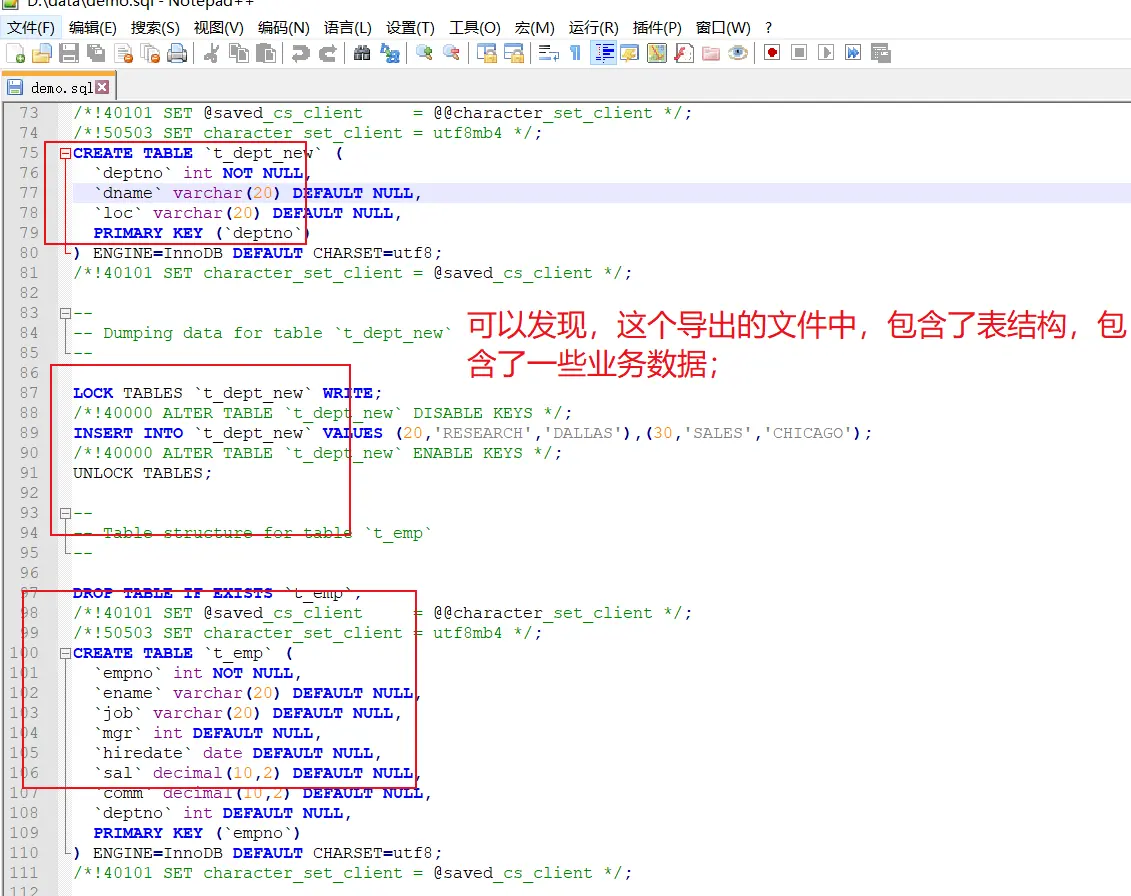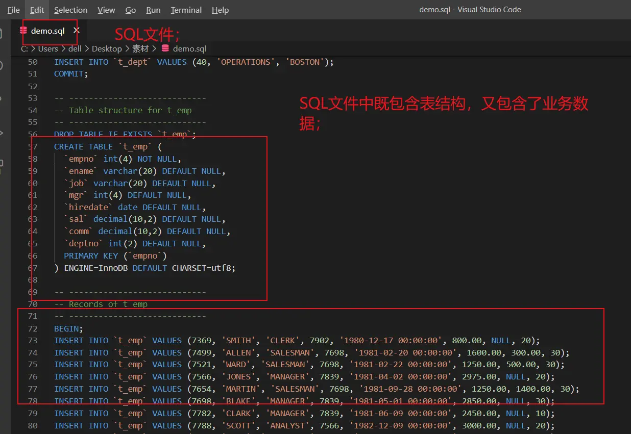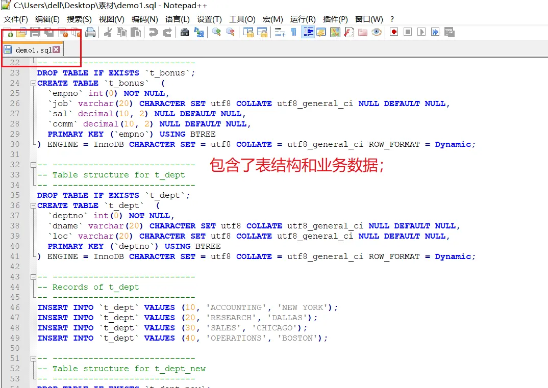 如:下面这个demo.sql就包含了表结构和业务数据;