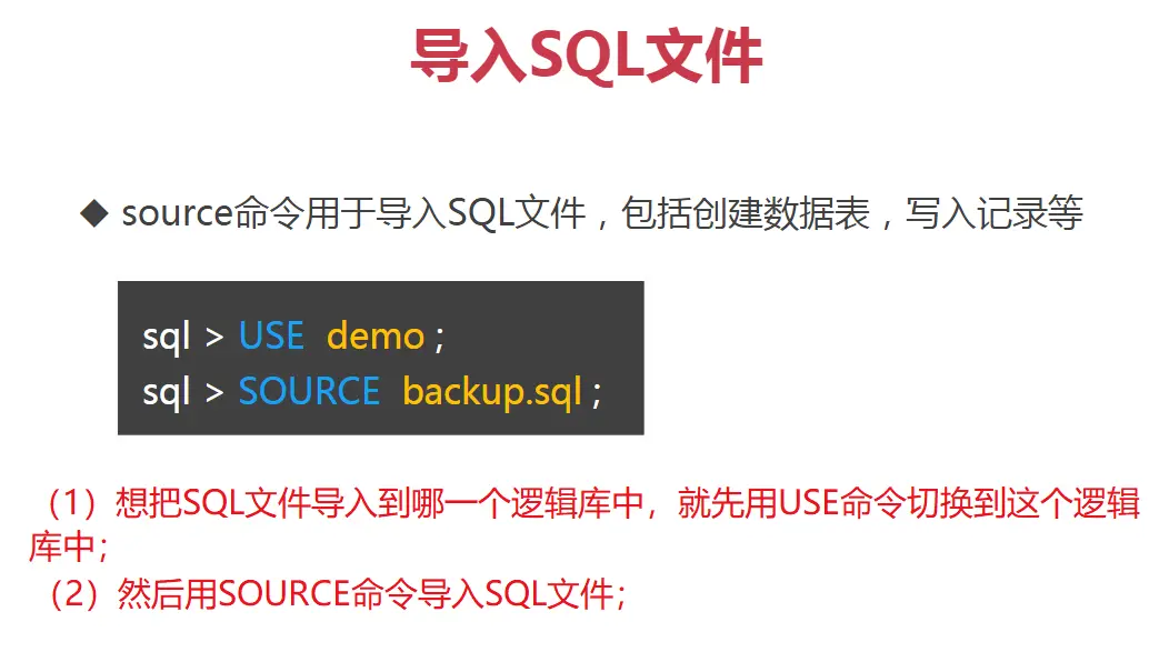 MySQL在导入SQL文件的时候,就相当于把这个文件中的所有SQL语句重新执行了一遍。