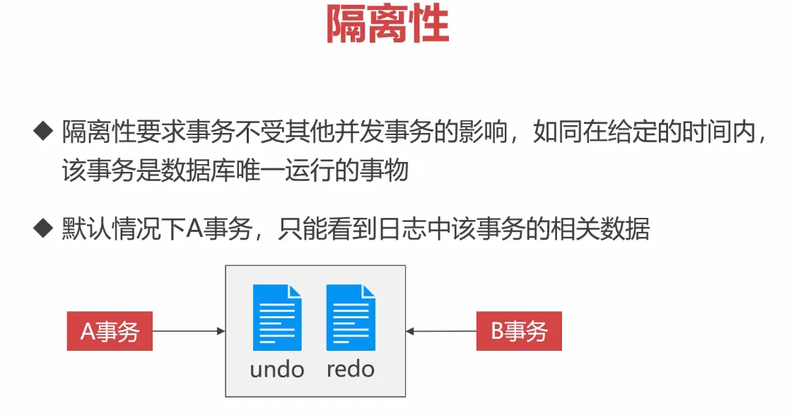 ● 事务是如何实现隔离性:undo和redo日志中,数据都会被标记是属于那个事务的,所以事务执行过程中,只能读到自己的临时数据;