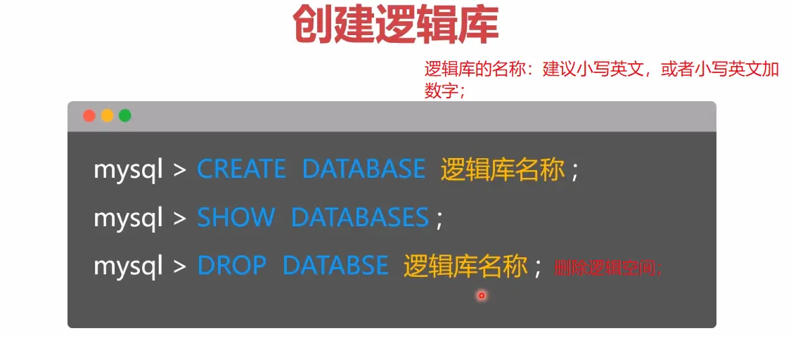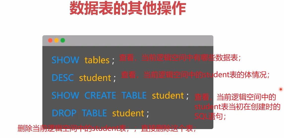 安装完MySQL数据库后,存储数据之前,就需要创建逻辑库和数据表,“数据库表的相关操作”部分主要就是管理逻辑库和数据表的内容。这也是本部分的主要内容: