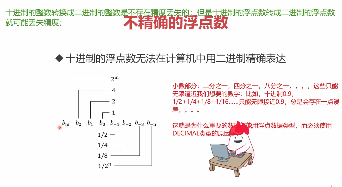 那么DECIMAL如何保证数据不丢失:因为DECIMAl在保存数据的时候,无论整数还是浮点数,都是按照字符串的方式来保存的;