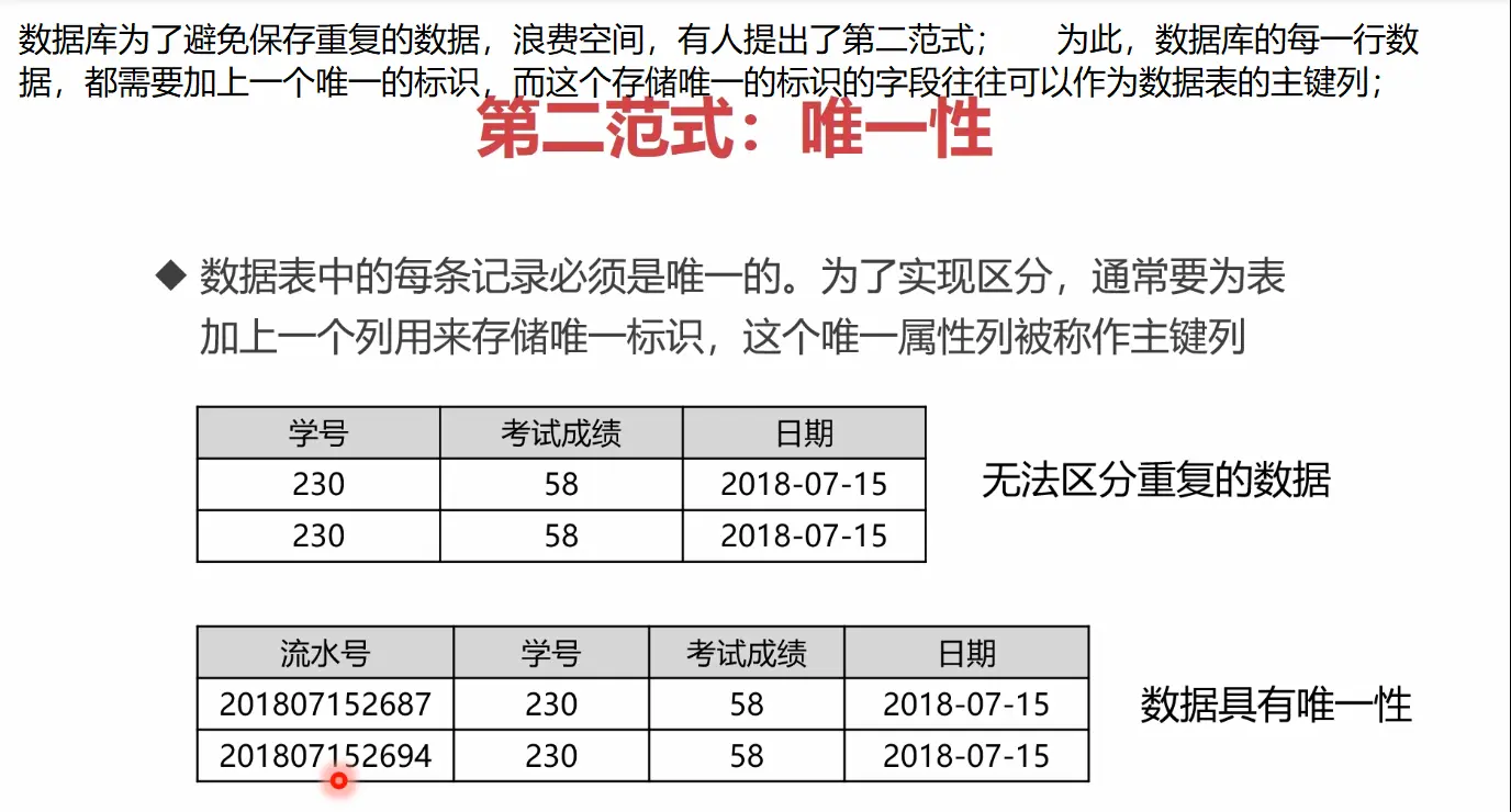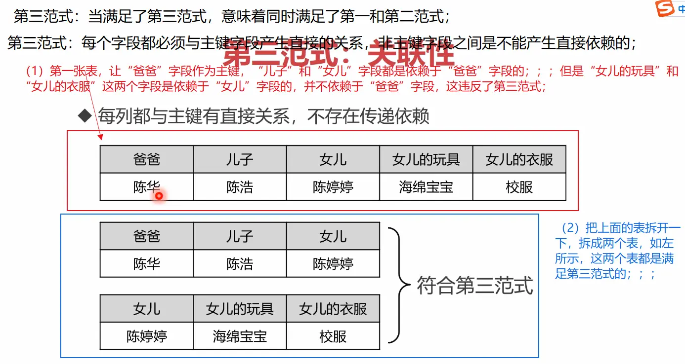 (4)即按照第三范式去创建数据表、保存数据的时候,将来在检索、提取数据的时候,会非常的方便;;;如果违反第三范式,虽然表也能创建出来,但是将来在检索、提取数据的时候,都会非常的慢。