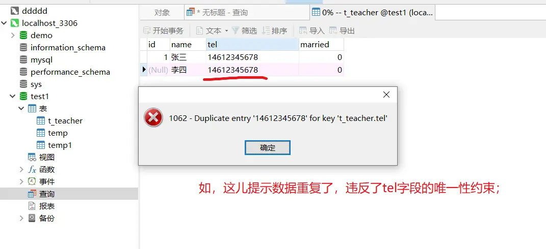 (1.附加)主键约束、非空约束、唯一约束的一个小范例