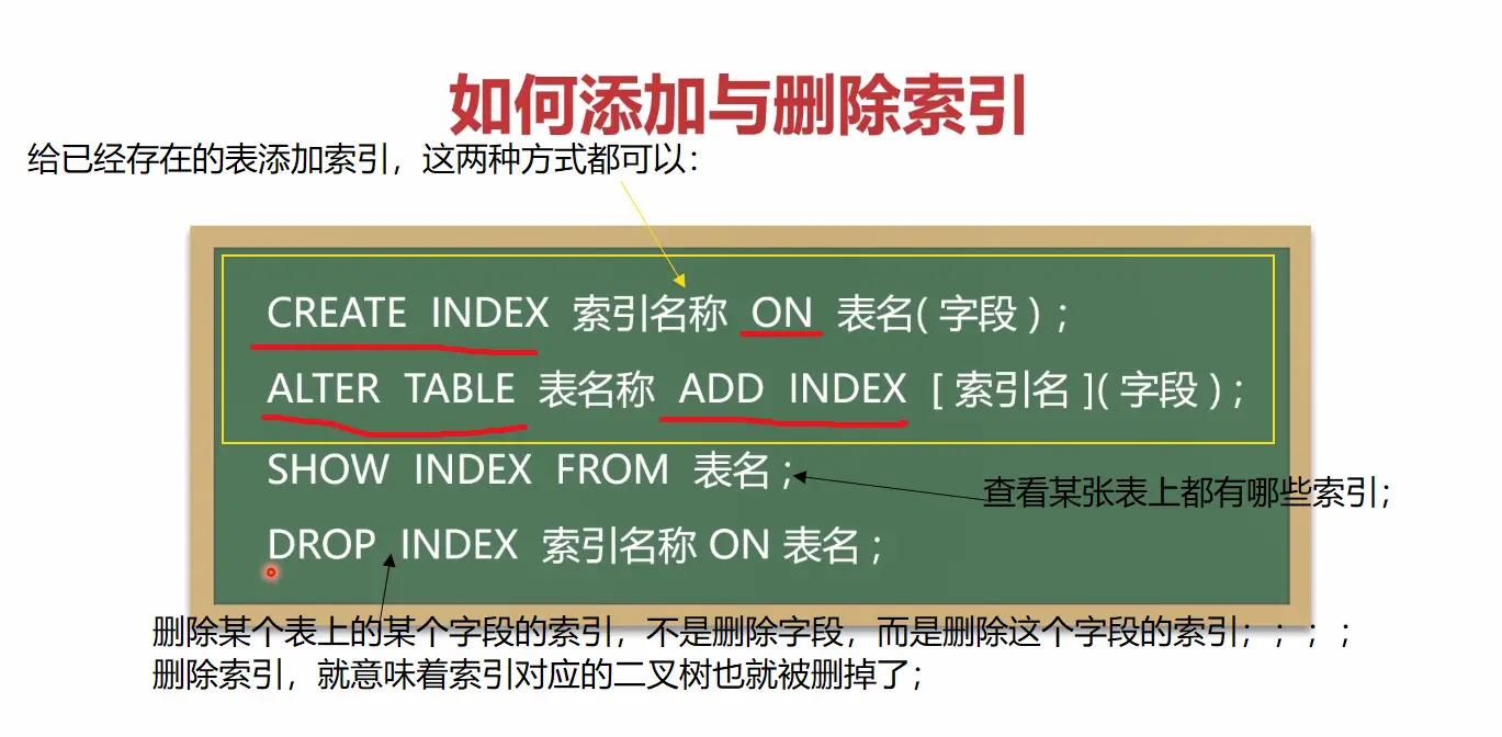 给一个已经存在的数据表创建索引;查看索引,删除索引;