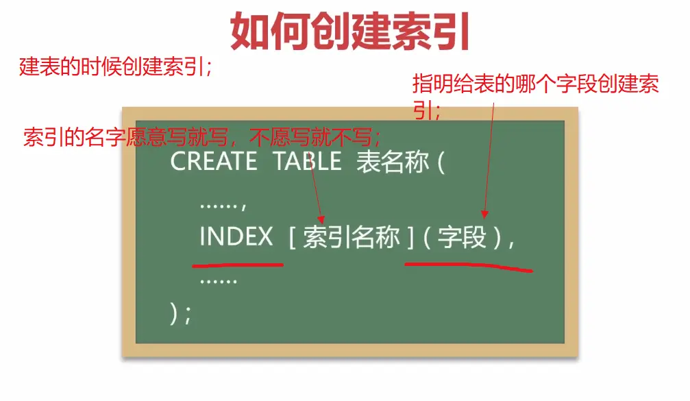 注:(1)如果指定了索引的名称,这个索引的名字就是我们指定的这个;;;如果没有指定索引的名字,索引也是有名字的,数据库就会用创建索引的那个字段的字段名作为索引的名称。