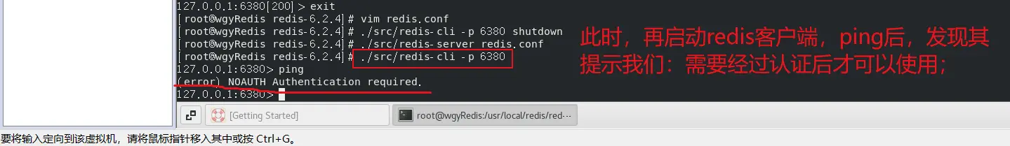 然后,可以发现,需要认证后才可以使用redis-cli;
