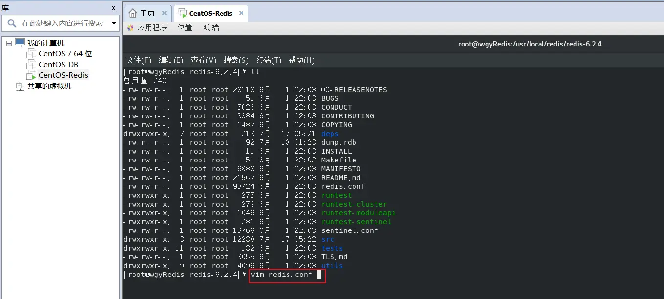 第三步:通过 【cd redis-6.2.4】 ,进入解压后的目录