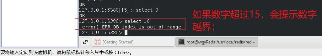【select + 一个数字】;这个数字的范围是0-15;(因为redis的数据库总量,databases配置项的默认值是16)
