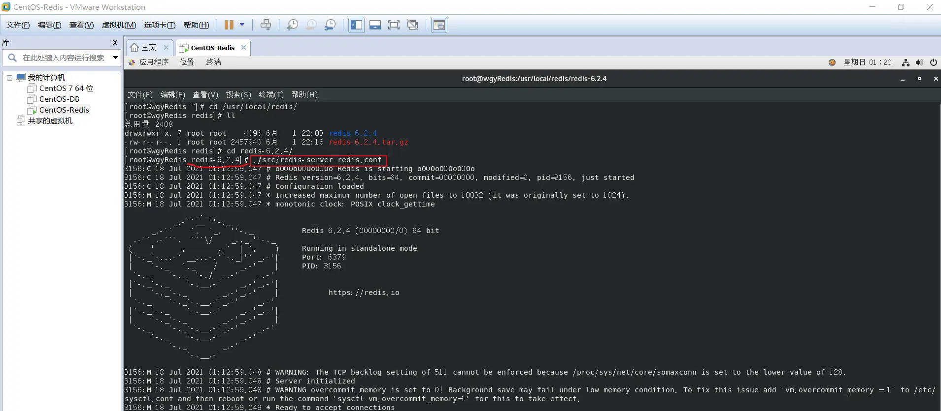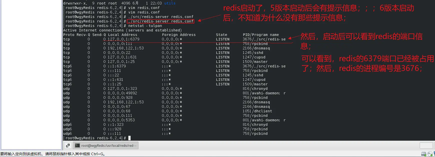 首先,在redis目录,通过【./src/redis-server redis.conf 】启动redis;