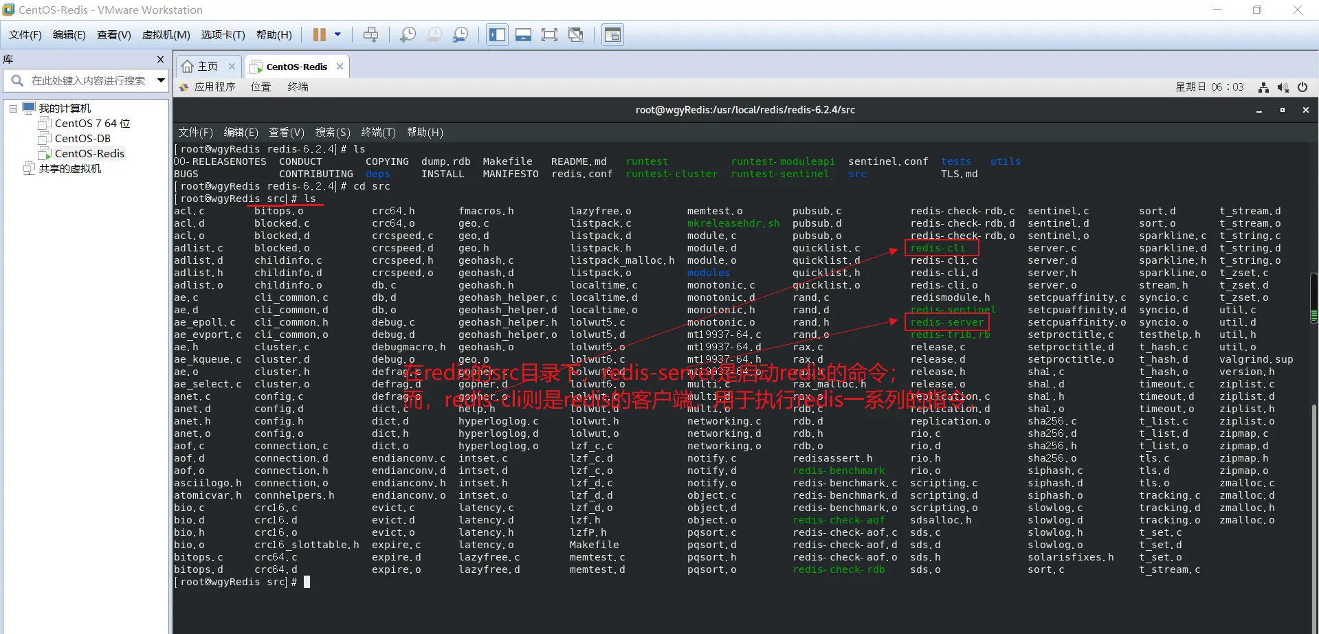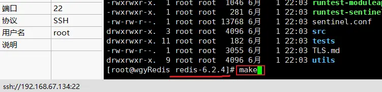 在【redis-6.2.4】目录中,可以看到redis的源代码;要让redis的源代码称为能够运行的文件,需要通过make命令,编译这些源代码