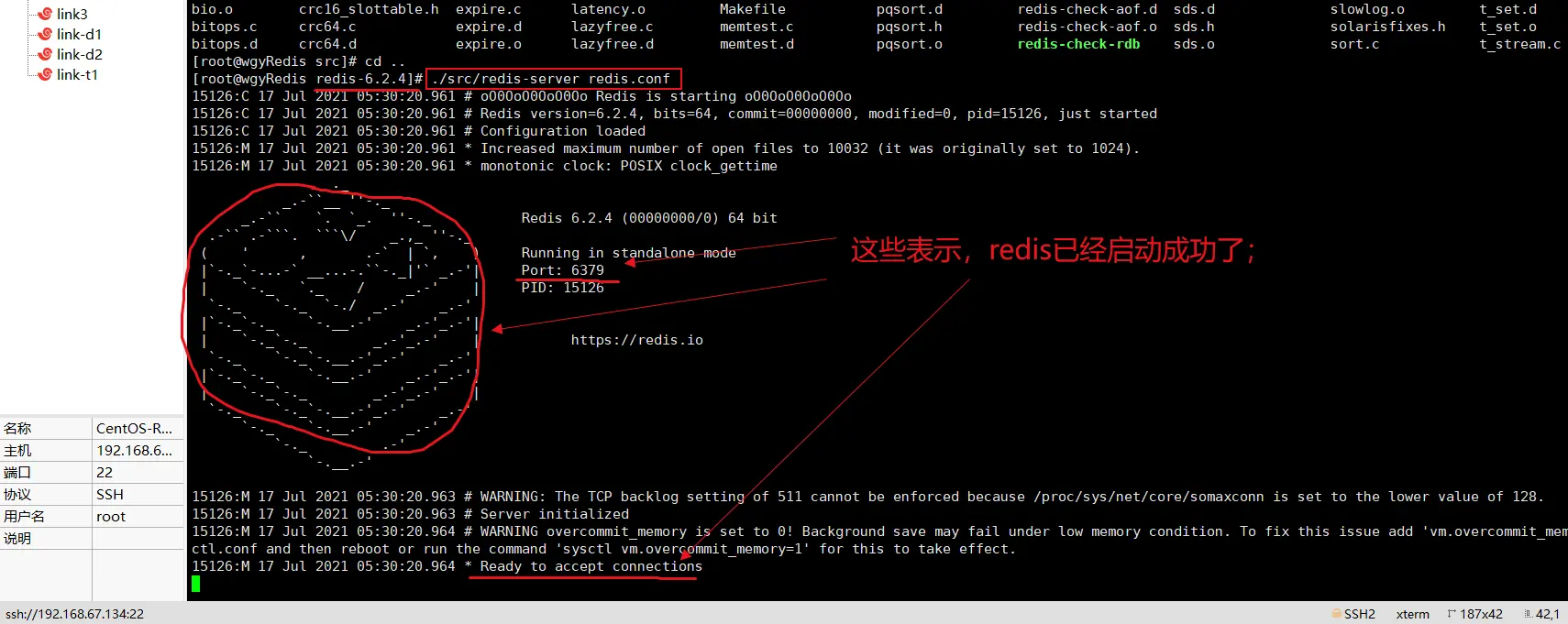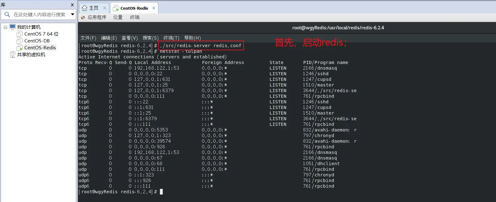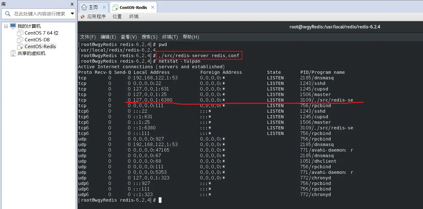 首先,在redis目录下,通过【./src/redis-server redis.conf】启动redis服务;