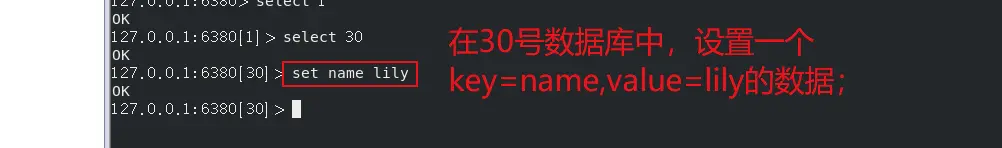 ● 如【set name lily】:意思是在当前数据库中增加一个key=name,value=lily的数据;