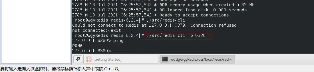因为,在redis.conf配置文件中,我们修改了redsi的端口,所以这儿会出现连接不上的情况;为此,需要使用【./src/redis-cli -p 6380】去启动redis客户端;