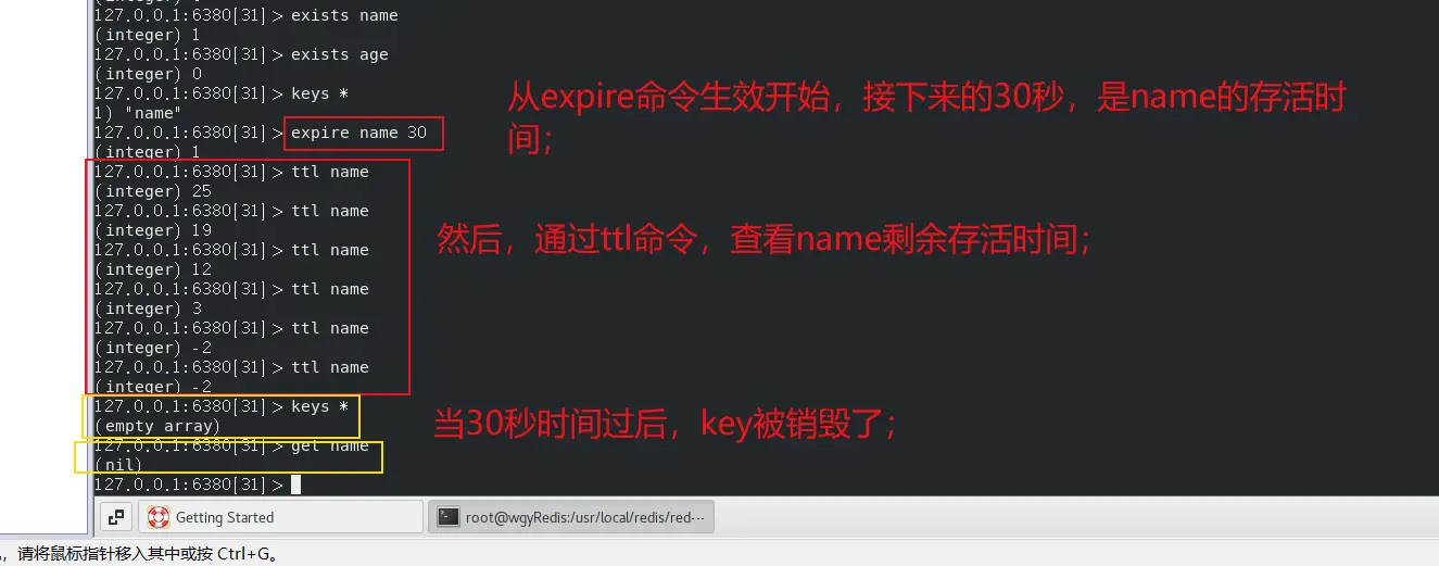 ● 如【expire hello 20】:意思是设置key=hello 20秒后过期;